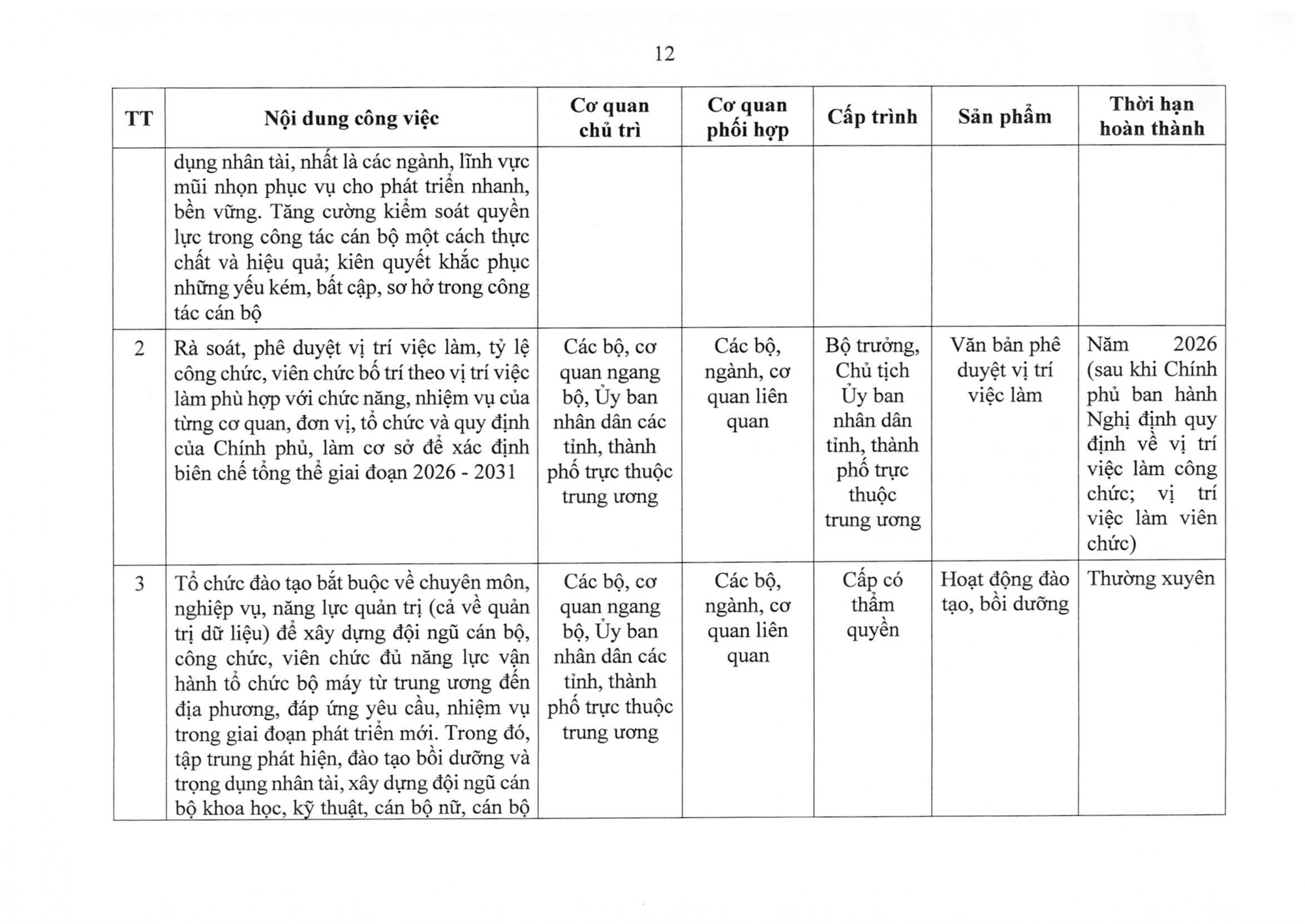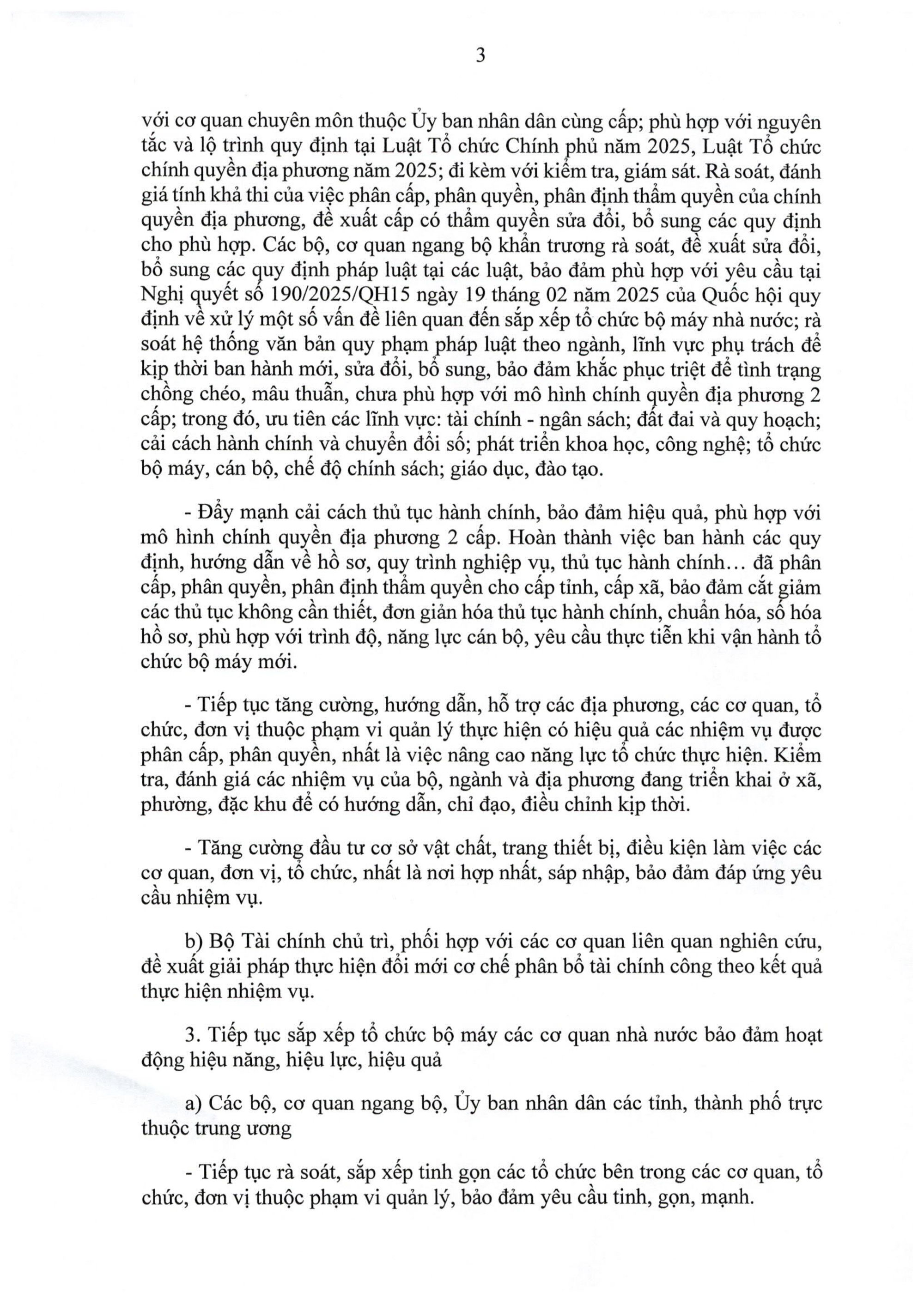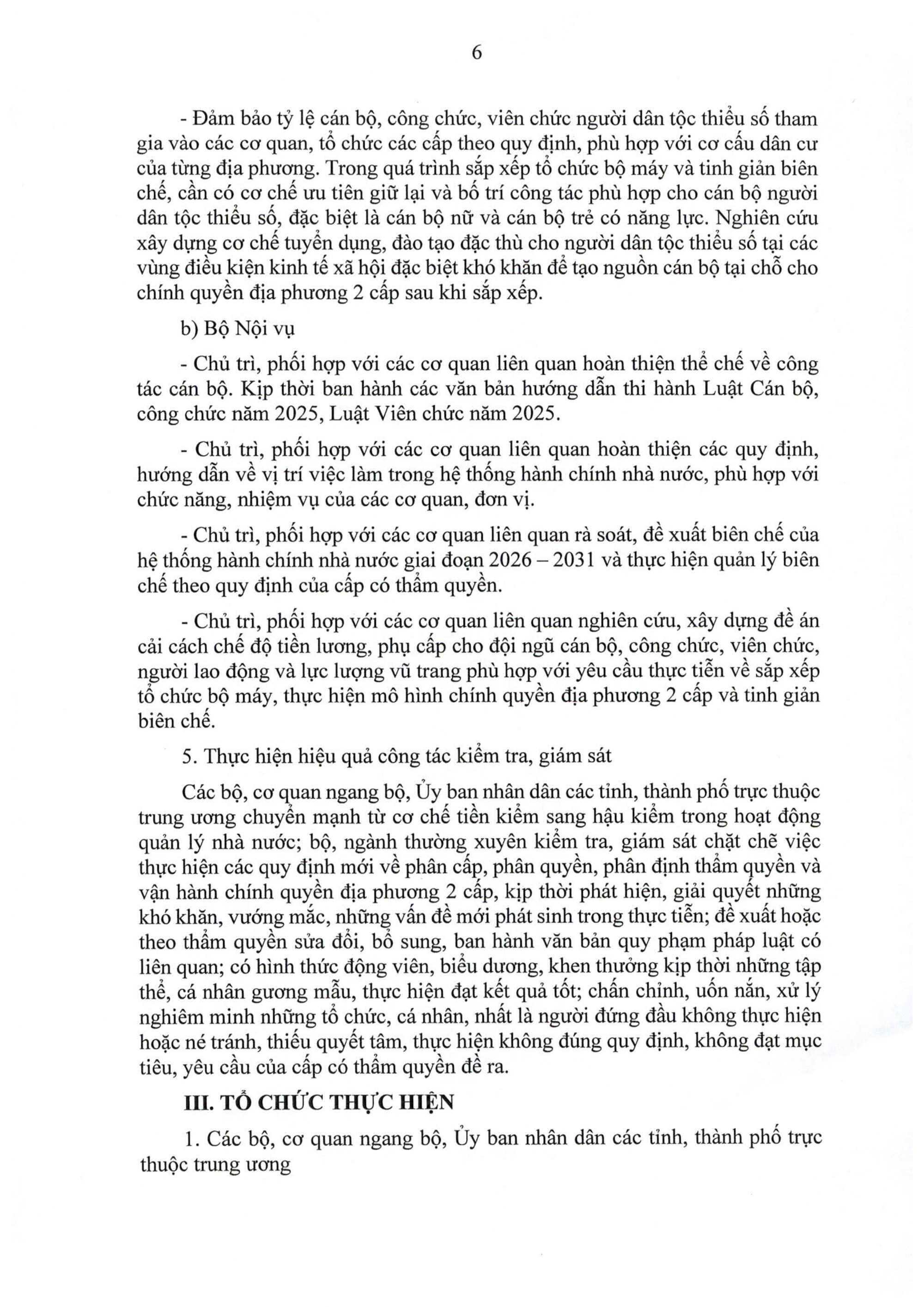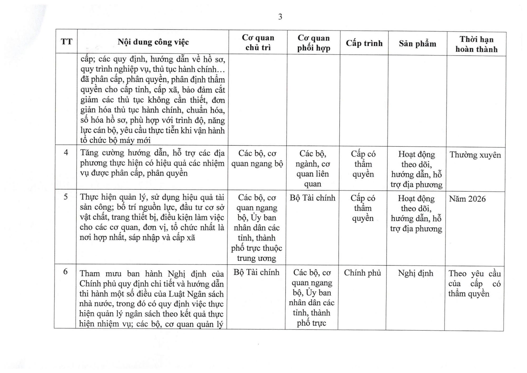 Hoàn thành việc ban hành các quy định, hướng dẫn về hồ sơ, quy trình nghiệp vụ, thủ tục hành chính... đã phân cấp, phân quyền, phân định thẩm quyền cho cấp tỉnh, cấp xã, bảo đảm cắt giảm các thủ tục không cần thiết, đơn giản hóa thủ tục hành chính, chuẩn hóa, số hóa hồ sơ, phù hợp với trình độ, năng lực cán bộ, yêu cầu thực tiễn khi vận hành tổ chức bộ máy mới.