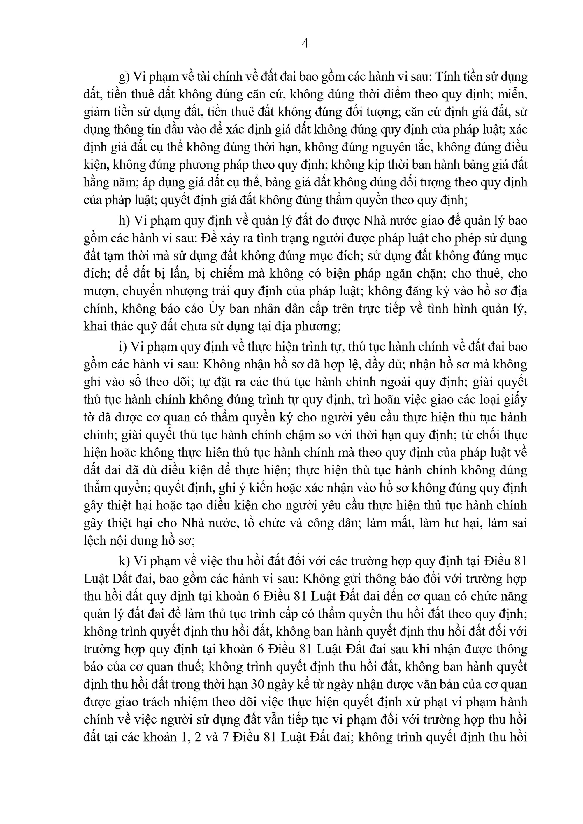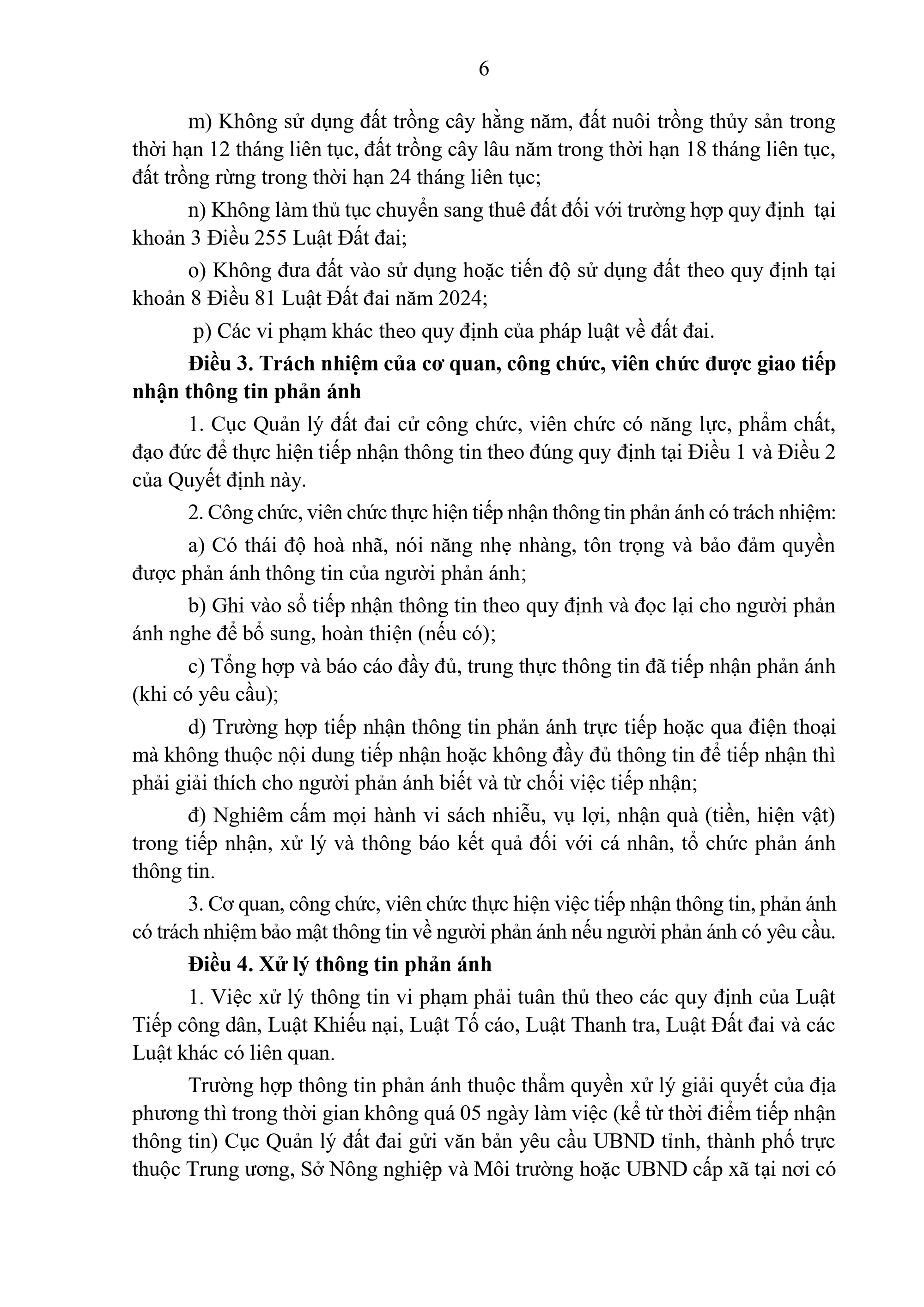 Quyết định cũng nêu rõ các trường hợp thông tin phản ánh được tiếp nhận, xử lý vi phạm pháp luật trong quản lý và sử dụng đất đai: