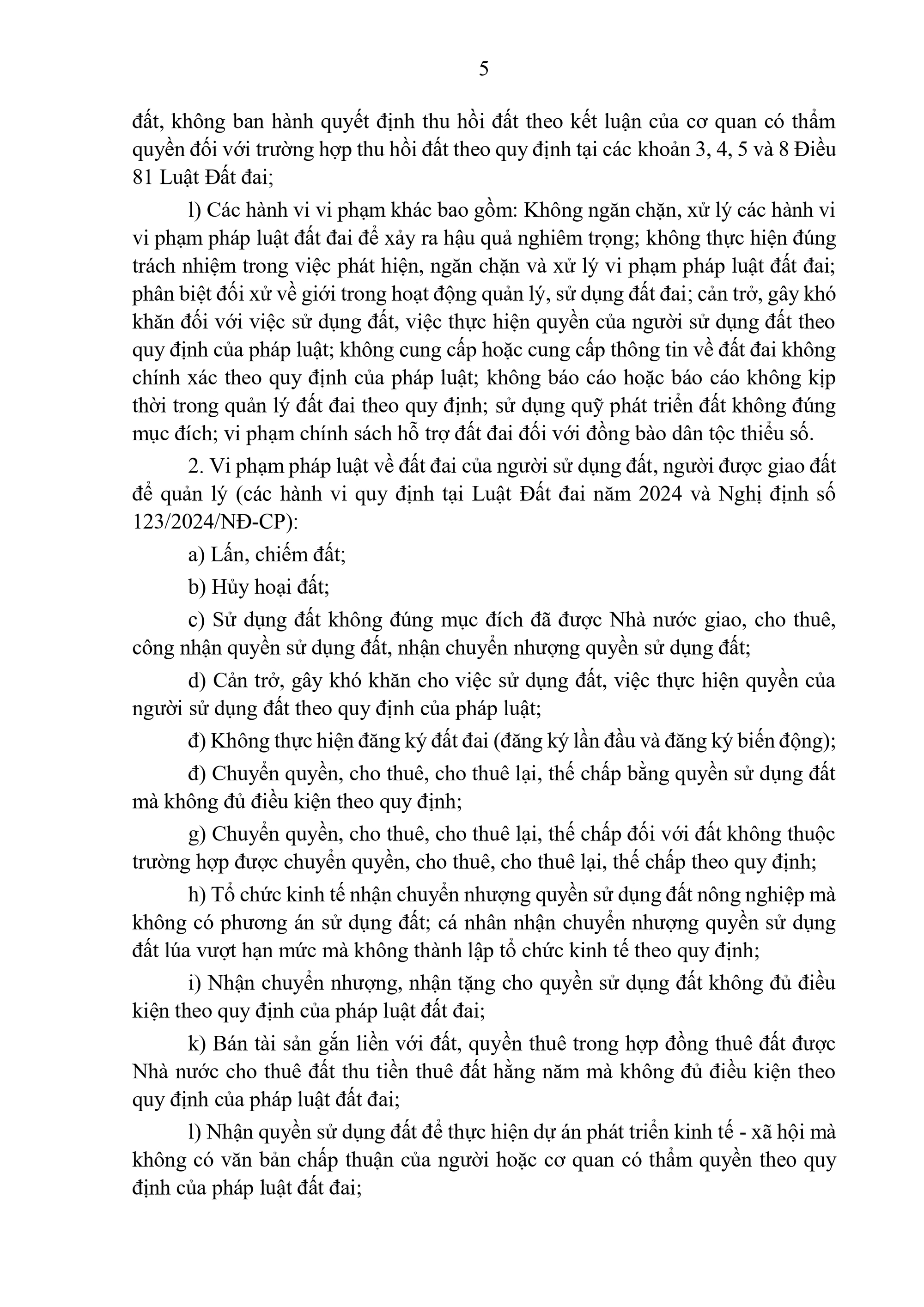 2. Vi phạm pháp luật về đất đai của người sử dụng đất, người được giao đất để quản lý (các hành vi quy định tại Luật Đất đai năm 2024 và Nghị định số 123/2024/NĐ-CP).