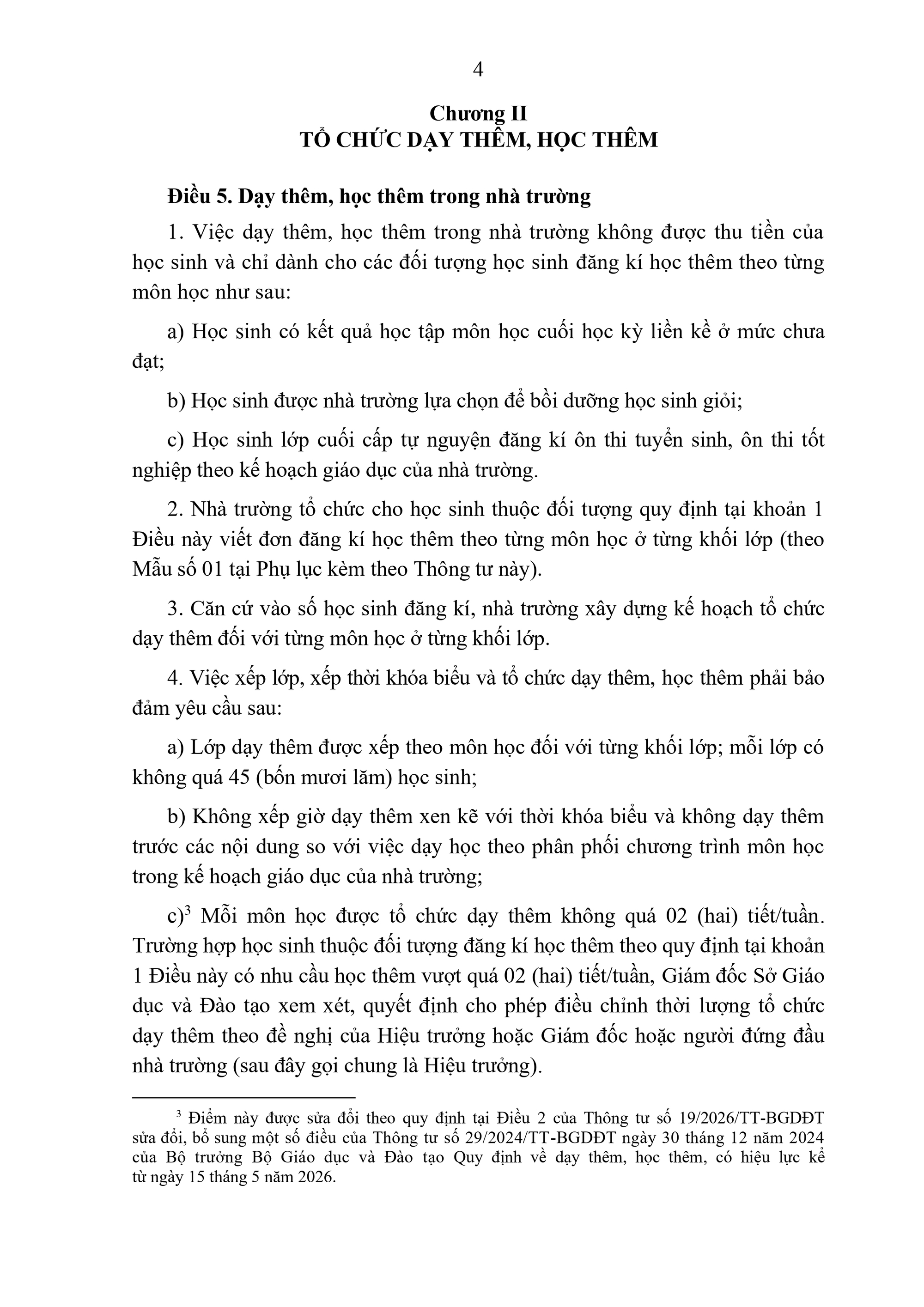 4. Việc xếp lớp, xếp thời khóa biểu và tổ chức dạy thêm, học thêm phải bảo đảm yêu cầu sau: