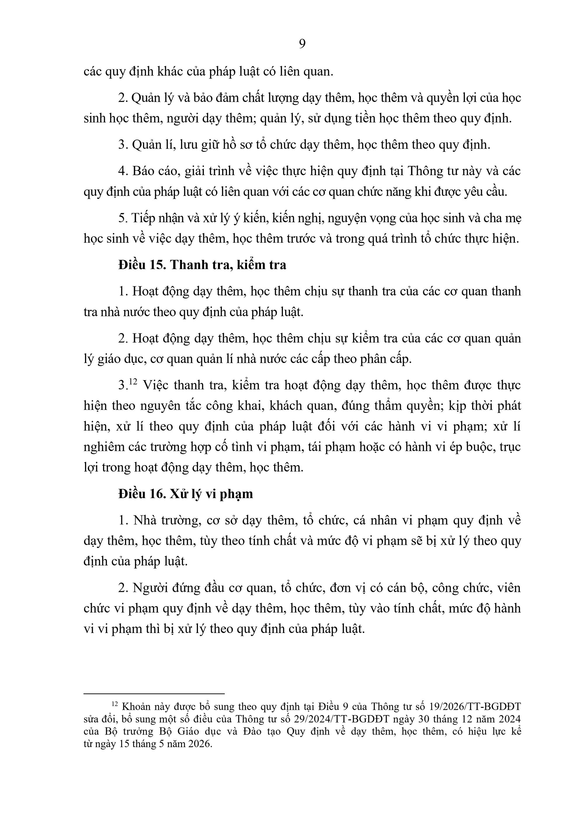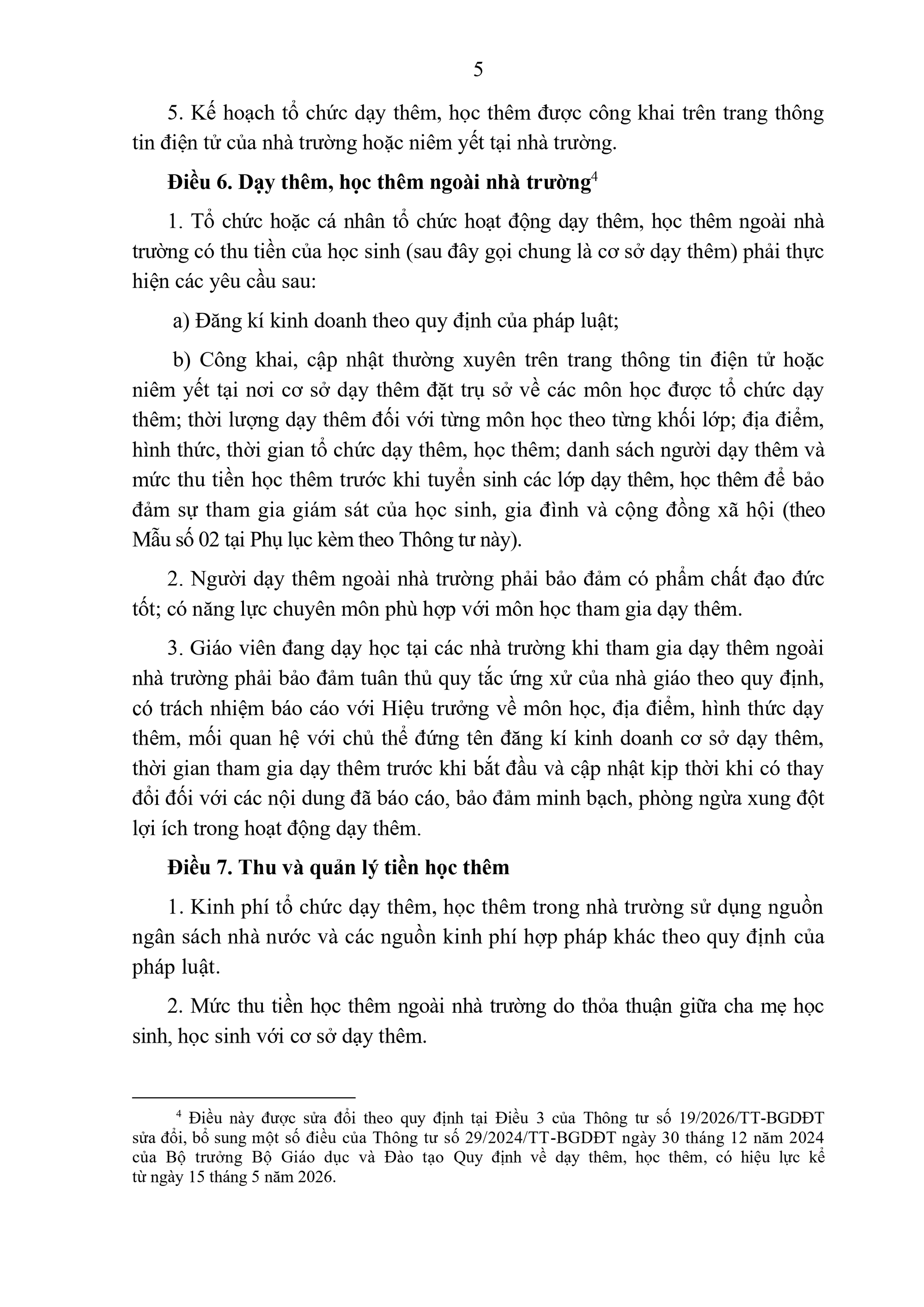 5. Kế hoạch tổ chức dạy thêm, học thêm được công khai trên trang thông tin điện tử của nhà trường hoặc niêm yết tại nhà trường.