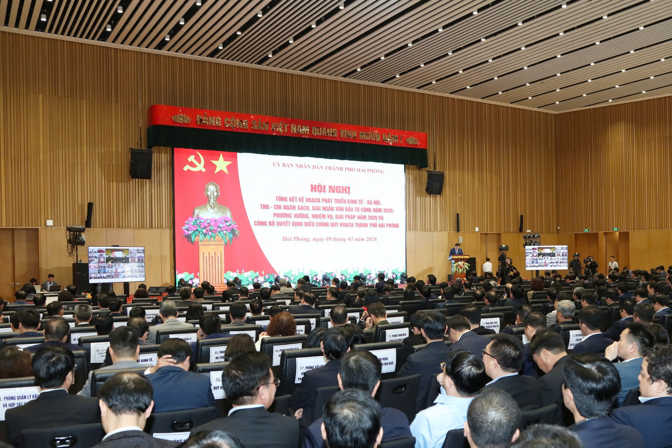 Chiều 9/1, UBND thành phố Hải Phòng đã tổ chức Hội nghị tổng kết công tác năm 2025, triển khai nhiệm vụ năm 2026 và Công bố Điều chỉnh Quy hoạch thành phố thời kỳ 2021-2030, tầm nhìn đến năm 2050. Hội nghị được tổ chức trực tiếp kết hợp trực tuyến tới các xã, phường, đặc khu.