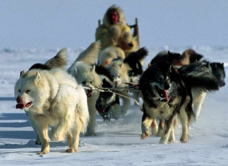Chó kéo là phương tiện quan trọng lâu đời. Các đàn chó kéo đã giúp cư dân Inuit vận chuyển người và hàng hóa trên băng suốt nhiều thế kỷ. Ảnh: Pinterest.