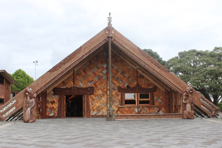 Nhà họp cộng đồng wharenui rất quan trọng. Đây là không gian sinh hoạt văn hóa và nghi lễ của cộng đồng Maori. Ảnh: Pinterest.