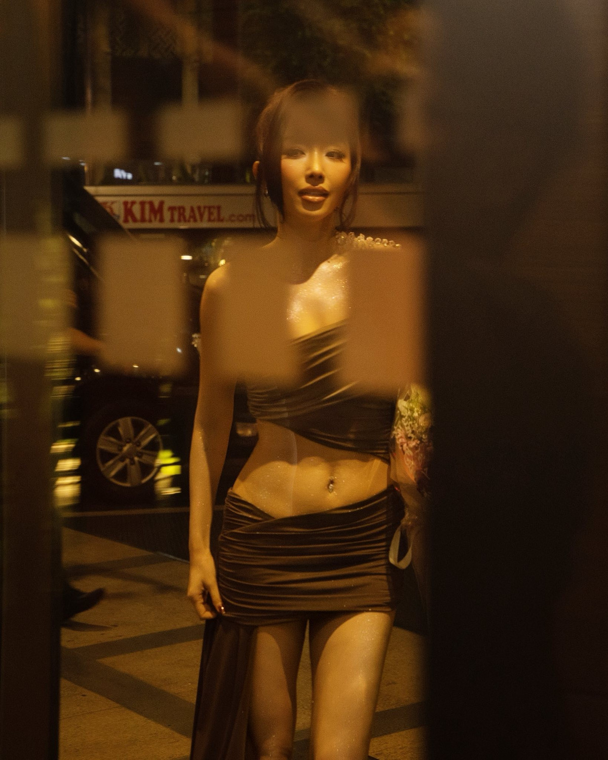 Dưới ánh đèn flash, Tóc Tiên tỏa ra thần thái tự tin, từng góc nghiêng đều "slay" đúng chuẩn mỹ nhân gợi cảm Vbiz.