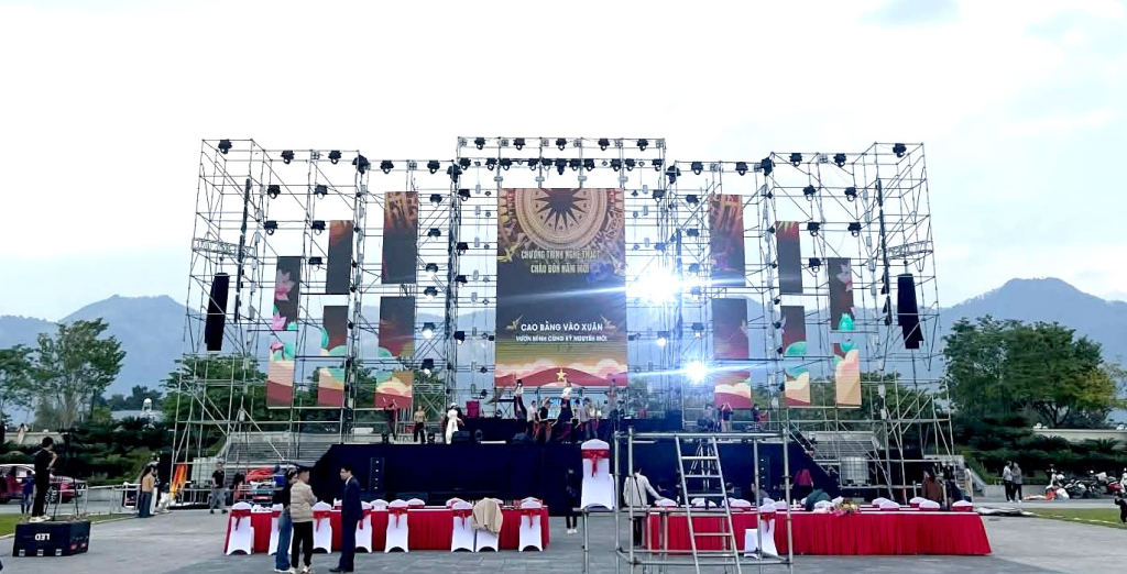 Sân khấu ngoài trời tại Quảng trường Km5, phường Thục Phán.