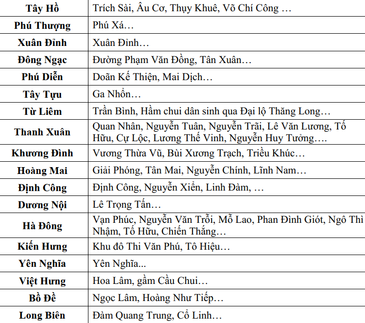 Các điểm, tuyến phố của Hà Nội có nguy cơ ngập lụt, ngập lụt sâu tối và đêm 7-10.