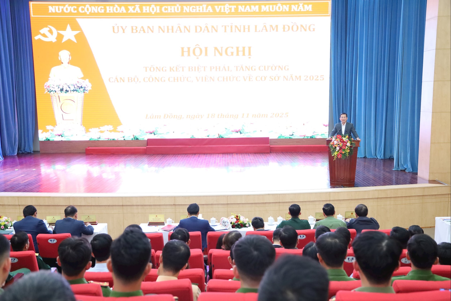 UBND tỉnh Lâm Đồng tổ chức Hội nghị Tổng kết biệt phái, tăng cường cán bộ, công chức, viên chức về cơ sở năm 2025. Ảnh: Đặng Hiền