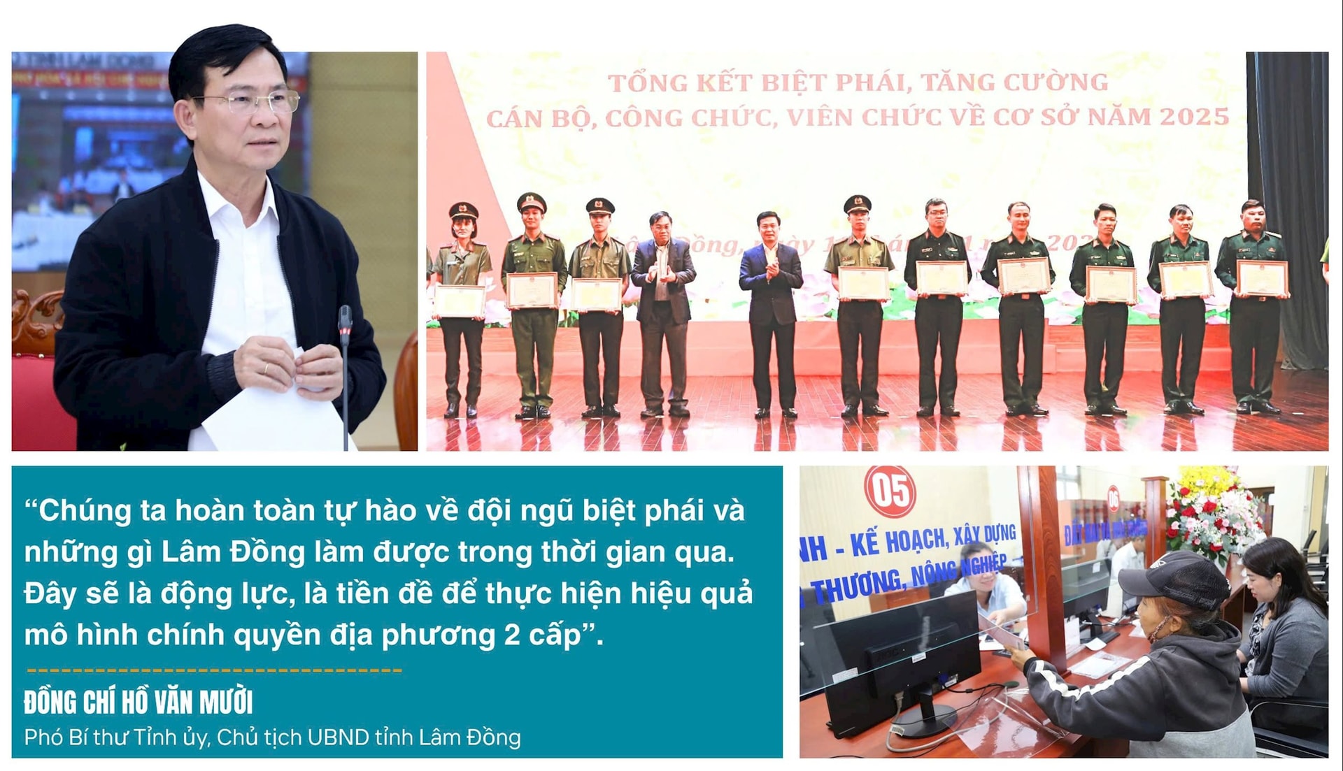 “Chúng ta hoàn toàn tự hào về đội ngũ biệt phái và tự hào về những gì Lâm Đồng đã làm được trong thời gian qua. Đây sẽ là động lực, là tiền đề để tỉnh thực hiện ngày càng hiệu quả mô hình vận hành chính quyền địa phương 2 cấp”, Chủ tịch UBND tỉnh Hồ Văn Mười nhấn mạnh.