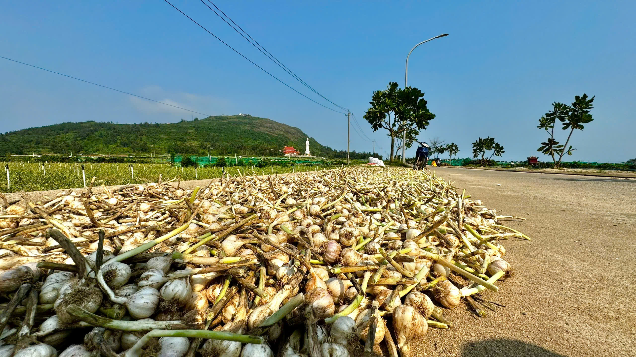 Tỏi là cây trồng chủ lực của người dân Lý Sơn, được ví như “vàng trắng” vì mang lại giá trị kinh tế lớn. Năm nay thời tiết thuận lợi, ít sâu bệnh nên năng suất bình quân đạt khoảng 5–6 tạ tỏi tươi mỗi sào.