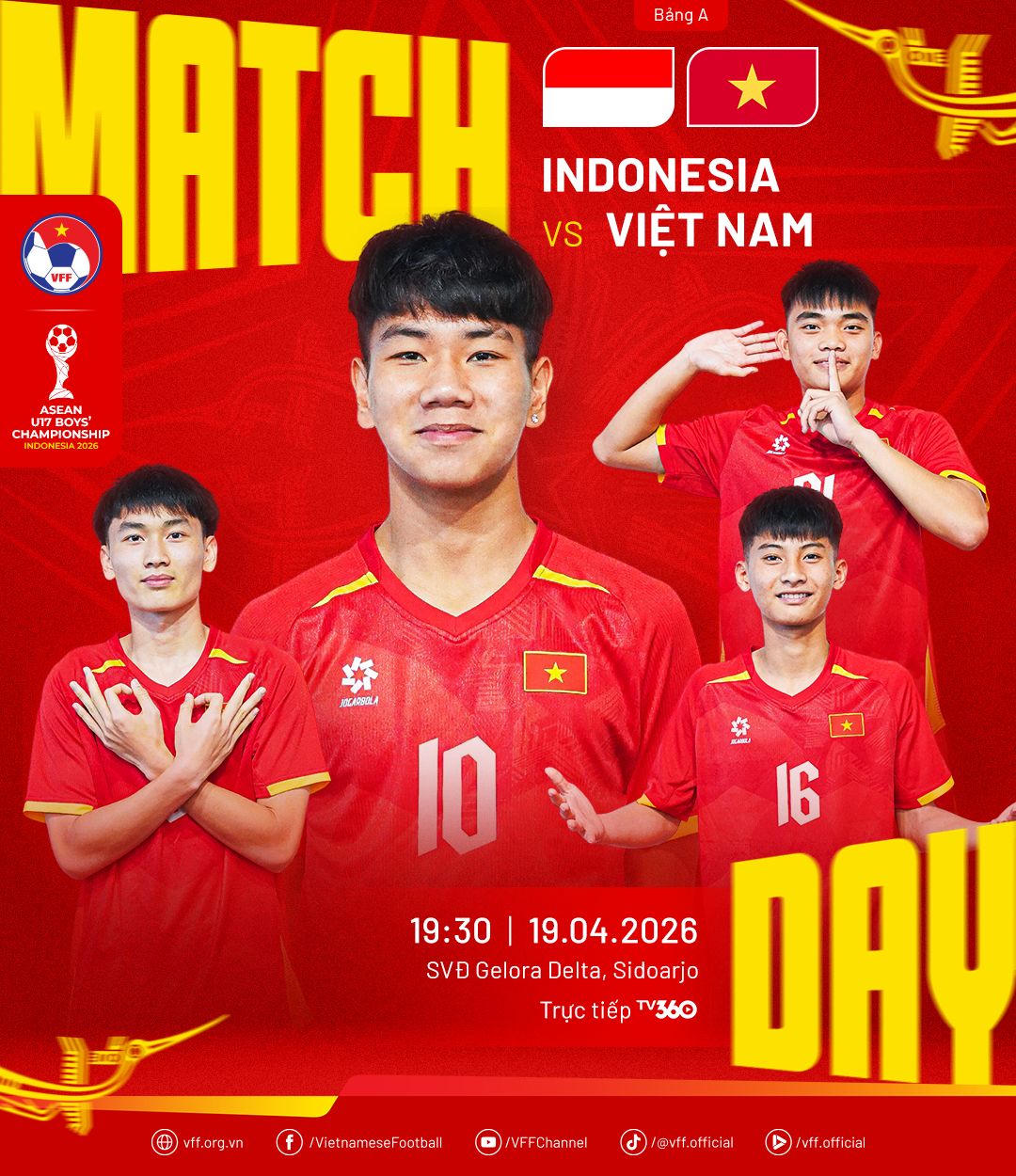 Hiện tại, U17 Việt Nam có được 6 điểm sau hai lượt trận, đồng thời tạo lợi thế lớn về hiệu số (+14) trong cuộc đua giành quyền vào bán kết. Ở lượt trận cuối diễn ra vào 19h30 hôm nay (19/4), thầy trò HLV Cristiano Roland sẽ đối đầu với chủ nhà Indonesia trong trận đấu có ý nghĩa quyết định ngôi đầu bảng A.