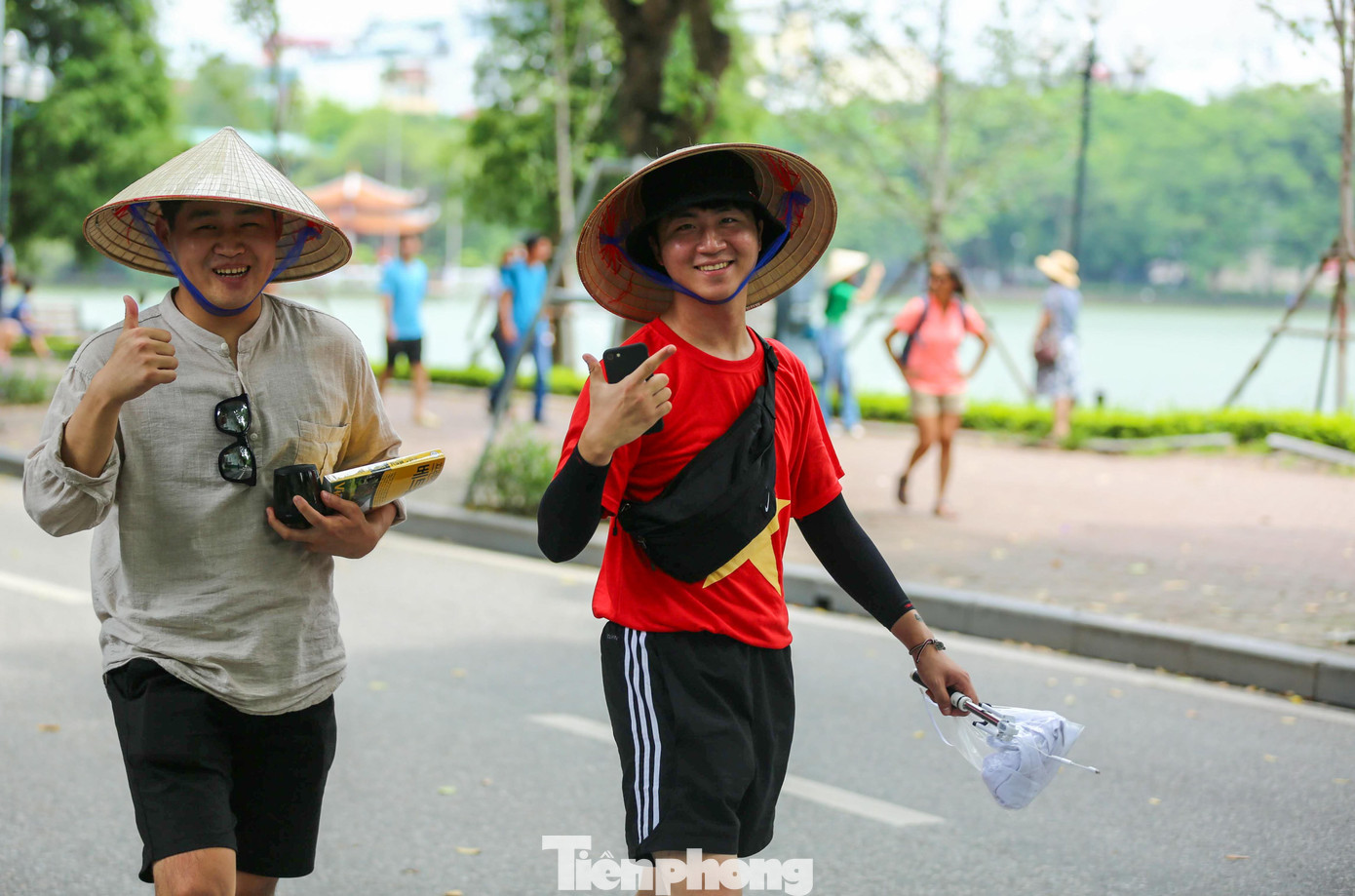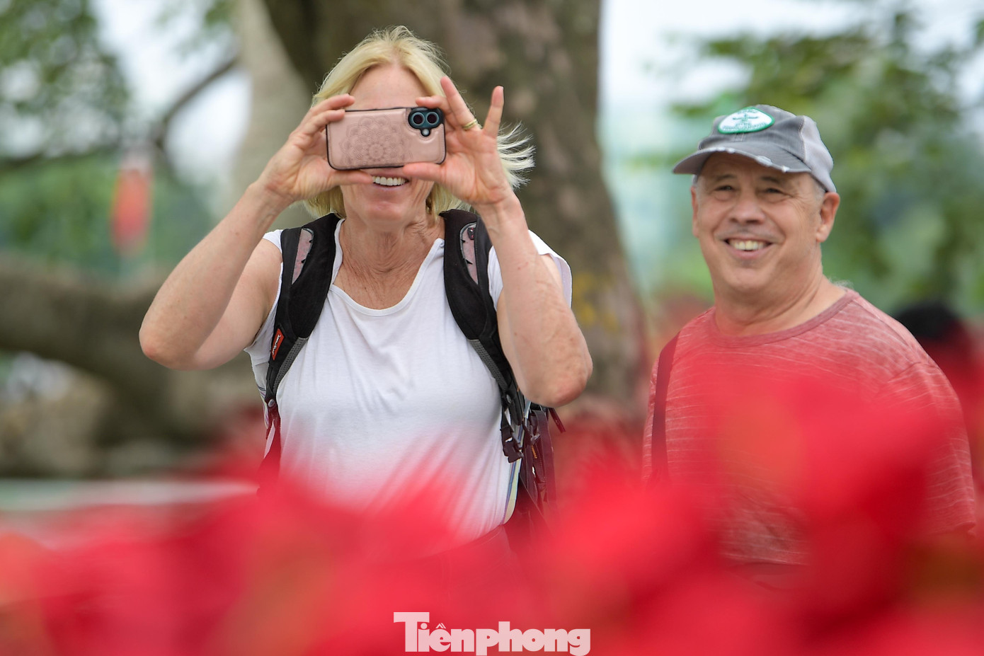 Họ thong thả dạo bước, trò chuyện và ghi lại khoảnh khắc đời thường của Hà Nội: Mái ngói xưa, ô cửa gỗ, xe đạp chở hoa len lỏi giữa dòng người.