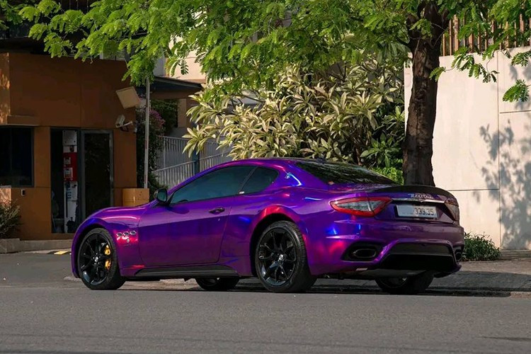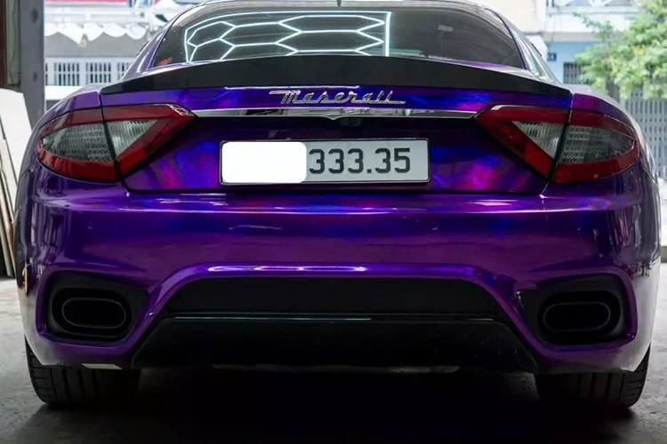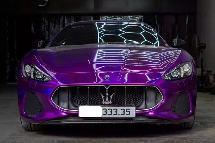 Nhìn ở thiết kế, chiếc xe Maserati GranTurismo Sport này có 2 hốc gió to, điểm nhấn là ngoại thất màu tím, với nhiều chi tiết sơn đen, bao gồm bộ mâm đa chấu.