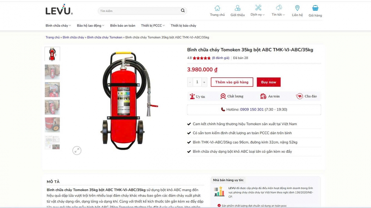 Theo tìm hiểu của phóng viên ngày 5/10, trên thị trường vẫn còn nhiều đơn vị rao bán bình chữa cháy mang nhãn hiệu Tomoken, bất chấp cơ quan chức năng đã phát hiện sản phẩm giả, không đạt chuẩn kỹ thuật. Hàng giả vẫn được rao bán trên các trang thương mại điện tử và cửa hàng online như LEVU Việt Nam, phongchaympmiennam, Công ty TNHH Thiết bị PCCC Bình An, baohobinhan.vn…, với cam kết “chính hãng, thương hiệu Tomoken sản xuất tại Việt Nam” và tem kiểm định an toàn PCCC dán trên bình.