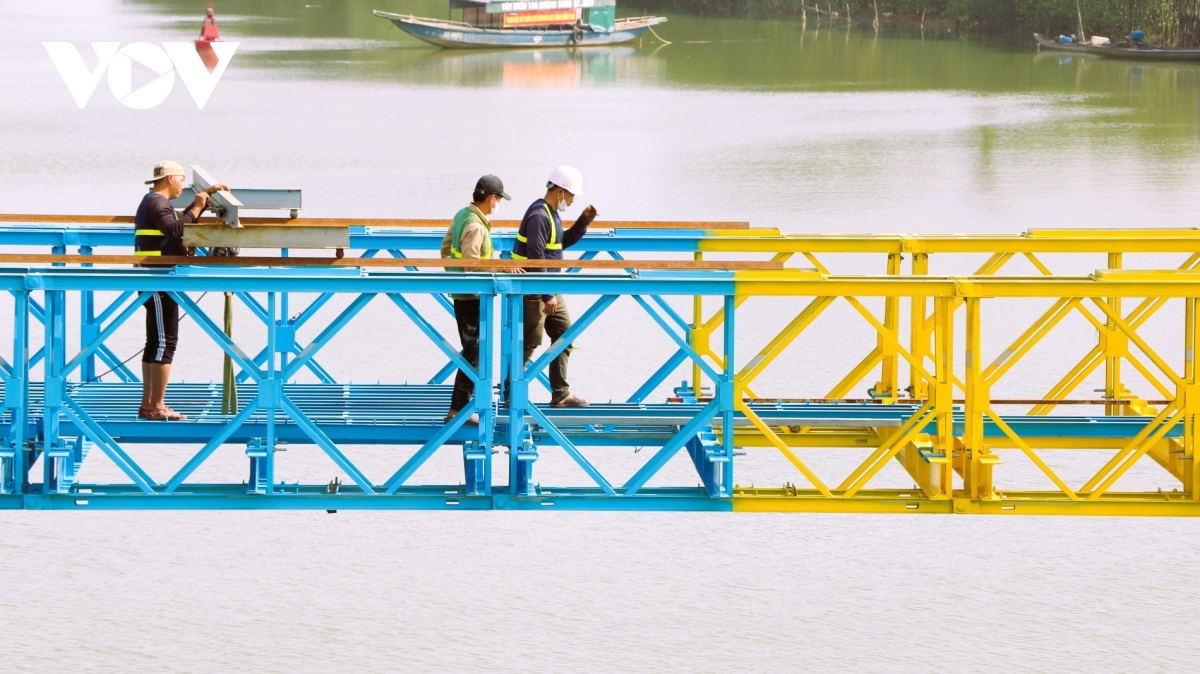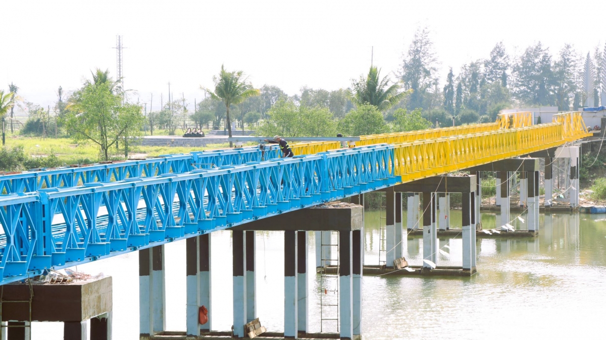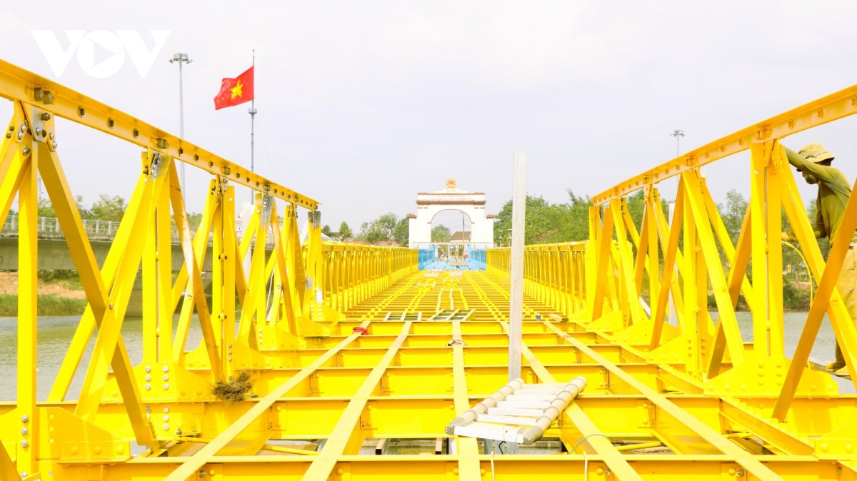 Cầu Hiền Lương bắc qua sông Bến Hải đang được tu bổ
