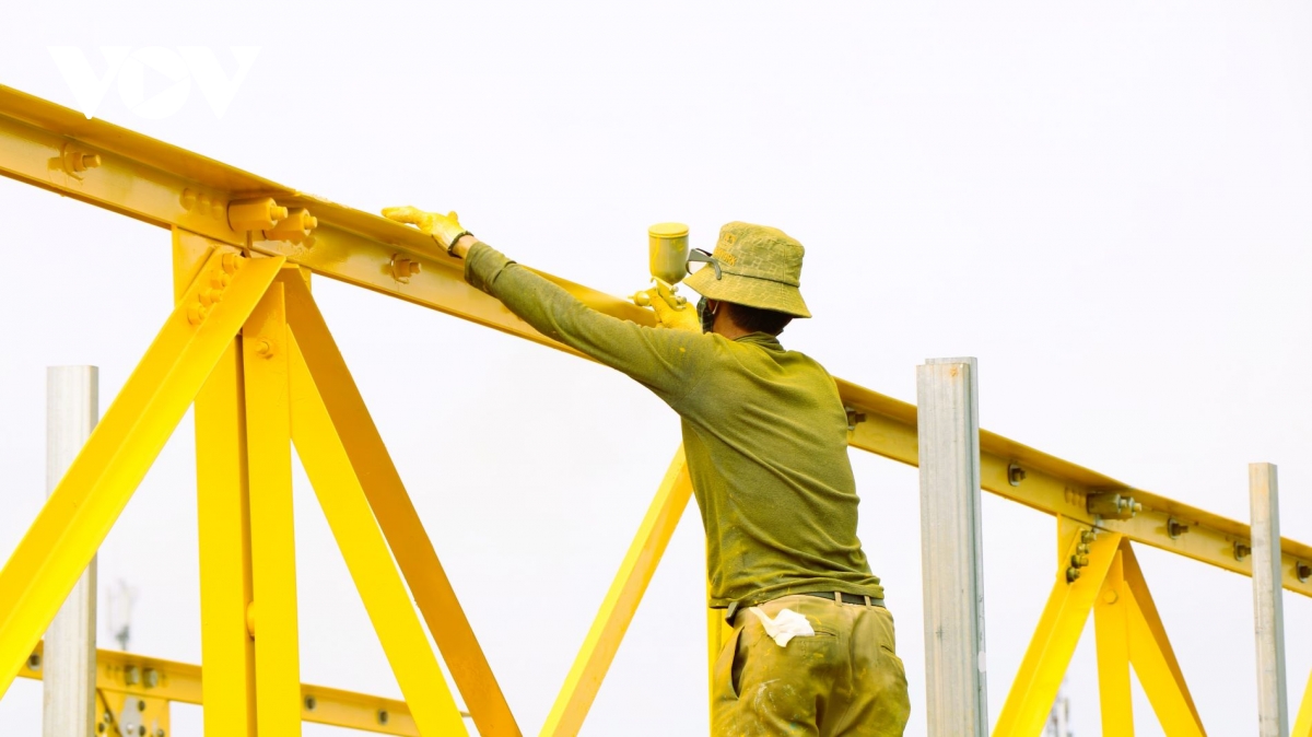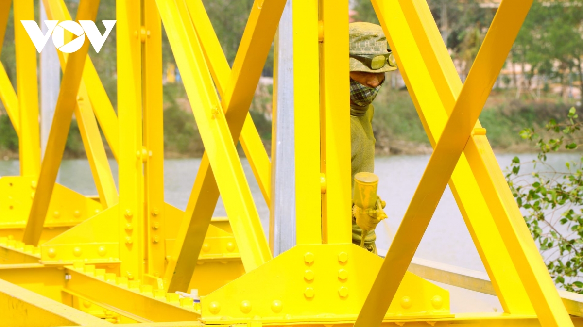Màu vàng trên cầu Hiền Lương được sơn mới