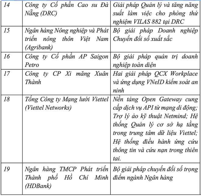 Danh sách các đơn vị, doanh nghiệp, cá nhân đoạt giải: