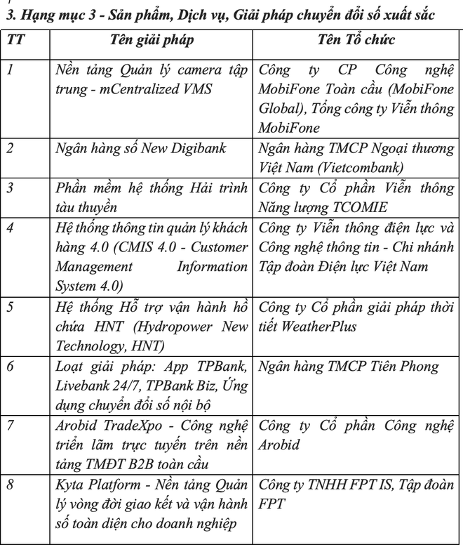 Bên cạnh đó, các hạng mục đạt giải thưởng năm 2025 tiếp tục phản ánh sức sáng tạo mạnh mẽ, khả năng ứng dụng công nghệ hiện đại như trí tuệ nhân tạo (AI), dữ liệu lớn, Internet vạn vật (IoT) hay chuỗi khối (Blockchain) vào thực tiễn.