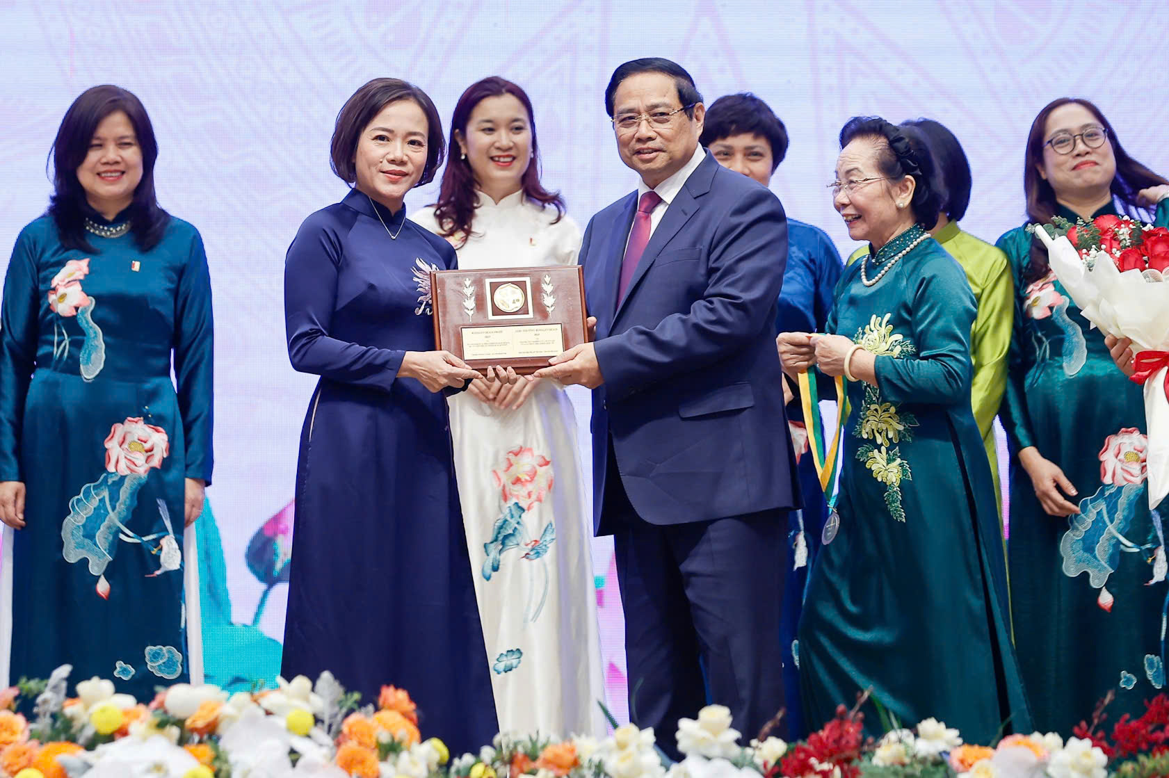 Phát biểu tại sự kiện, Thủ tướng Phạm Minh Chính nêu rõ, đây là dịp để ghi nhận, tôn vinh các thế hệ phụ nữ Việt Nam say mê cống hiến, kiến tạo bản sắc, góp phần bồi đắp, làm rạng rỡ thêm cốt cách con người Việt Nam, tô thắm thêm vẻ đẹp non sông, đất nước và viết nên những trang sử vẻ vang, hào hùng của dân tộc.