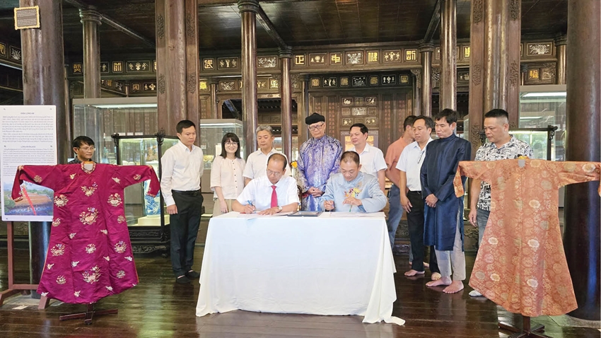 Trung tâm Bảo tồn Di tích Cố đô Huế tiếp nhận 2 chiếc áo của bà Từ Cung do ông Phạm Xuân Cương (người được ủy quyền) trao
