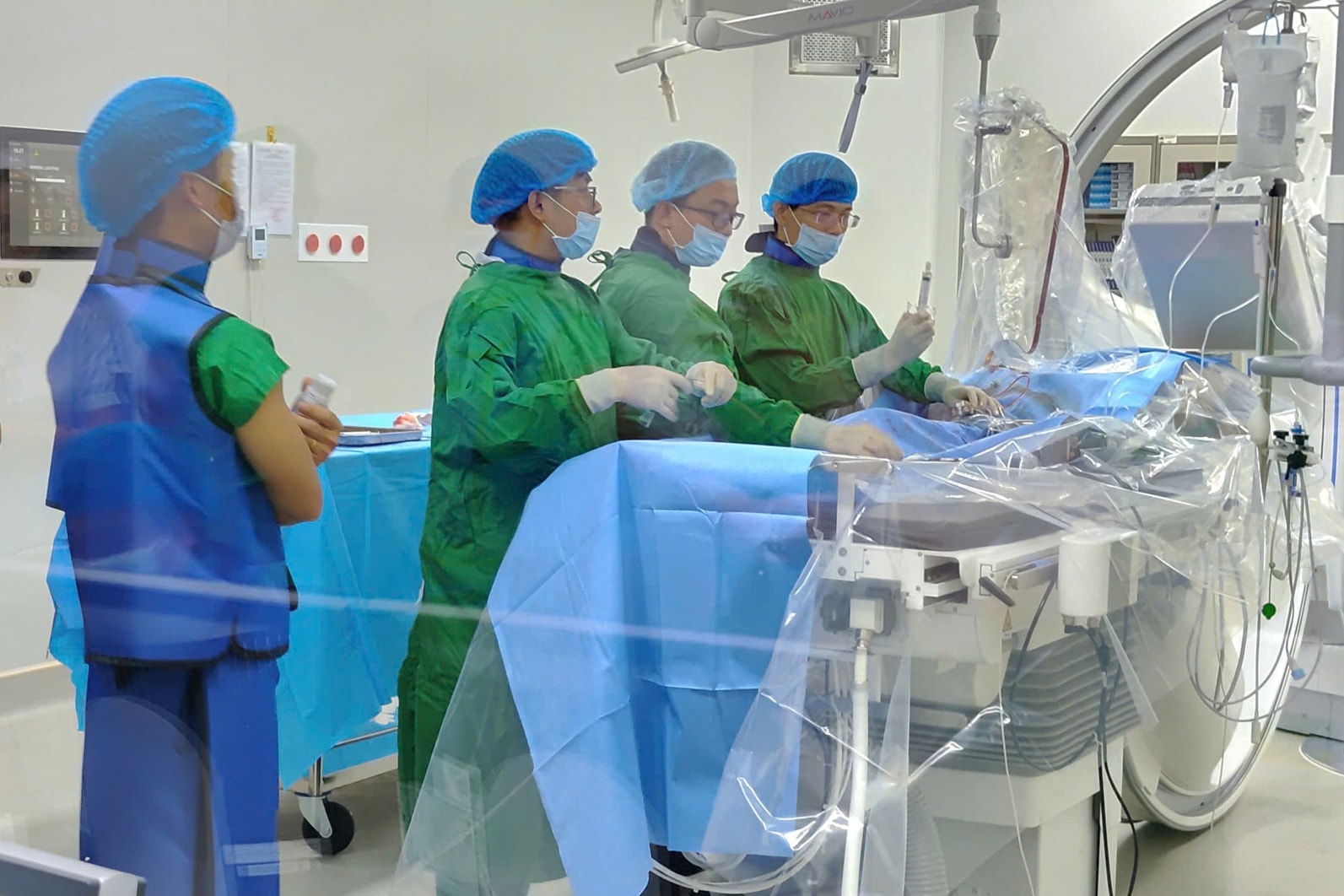 Bác sĩ thực hiện can thiệp tim mạch tại Bệnh viện Đa khoa Bình Thuận. Ảnh: Trang Hiếu