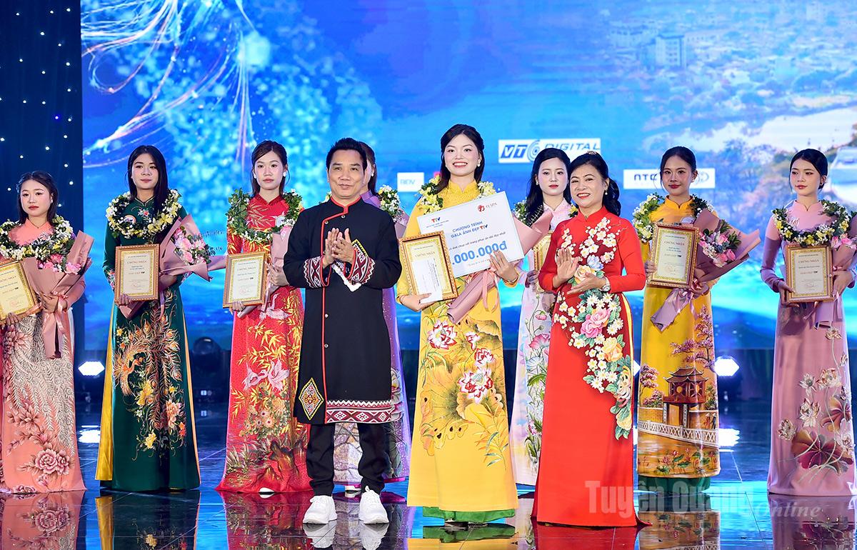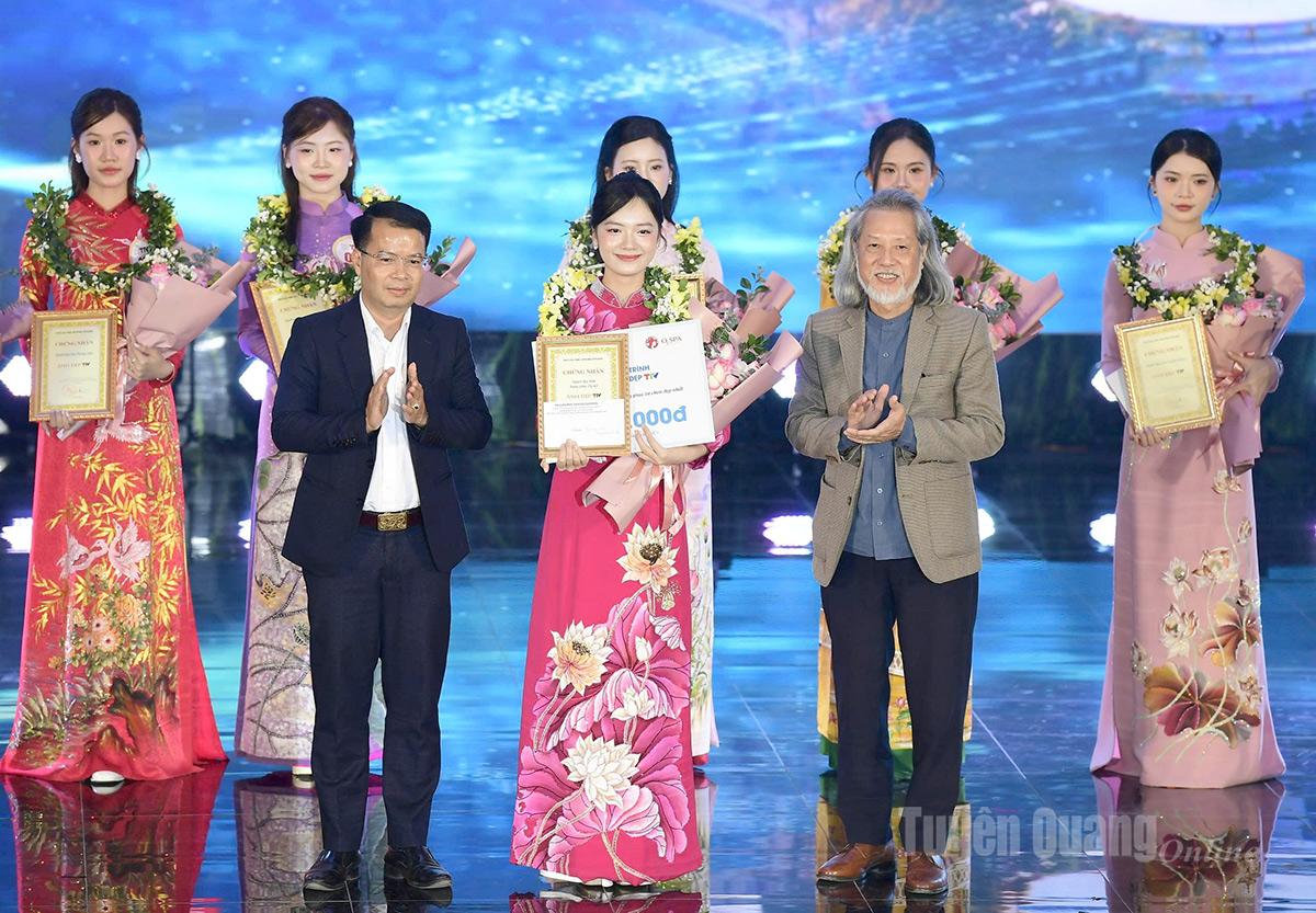 Lãnh đạo Báo và phát thanh, truyền hình Tuyên Quang trao giải thí sinh có ảnh Trang phục dân tộc đẹp nhất.