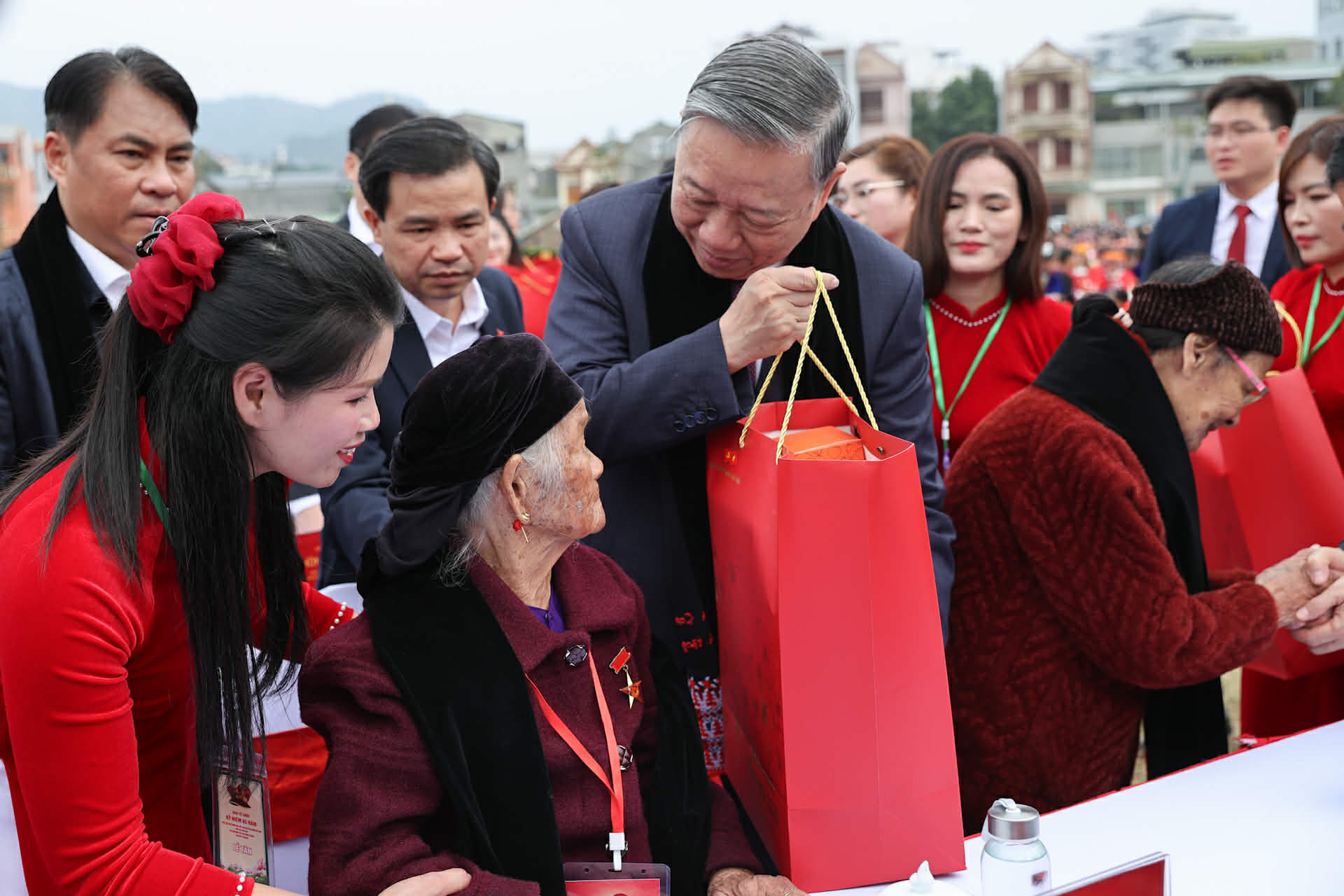 Nhân dịp này, Tổng Bí thư Tô Lâm cùng các lãnh đạo Đảng, Nhà nước đã trao tặng những phần quà tri ân đến các Mẹ Việt Nam Anh hùng, các vị lão thành cách mạng, các Anh hùng Lực lượng vũ trang nhân dân, người có công với cách mạng và gia đình thân nhân của 5 cán bộ về nước cùng Bác Hồ năm 1941; trao tặng phần quà cho Ban Chấp hành Đảng bộ tỉnh Cao Bằng; hỗ trợ 50 tỷ đồng cho tỉnh đầu tư xây dựng mới Trường Tiểu học Nùng Trí Cao.