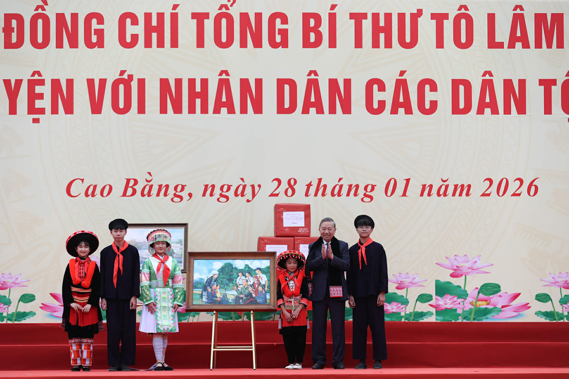 Chiều nay, tại sân vận động tỉnh Cao Bằng, Tổng Bí thư Tô Lâm gặp mặt, nói chuyện với nhân dân các dân tộc tỉnh Cao Bằng.