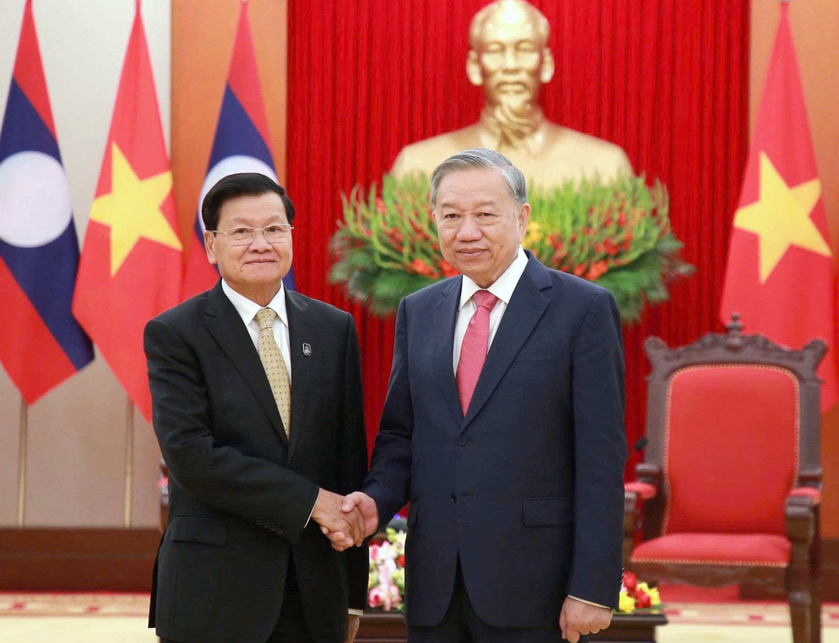Tổng Bí thư Tô Lâm (phải) gặp gỡ Tổng Bí thư, Chủ tịch nước Lào Thongloun Sisoulith tháng 10-2025 tại Hà Nội. Ảnh: VGP.