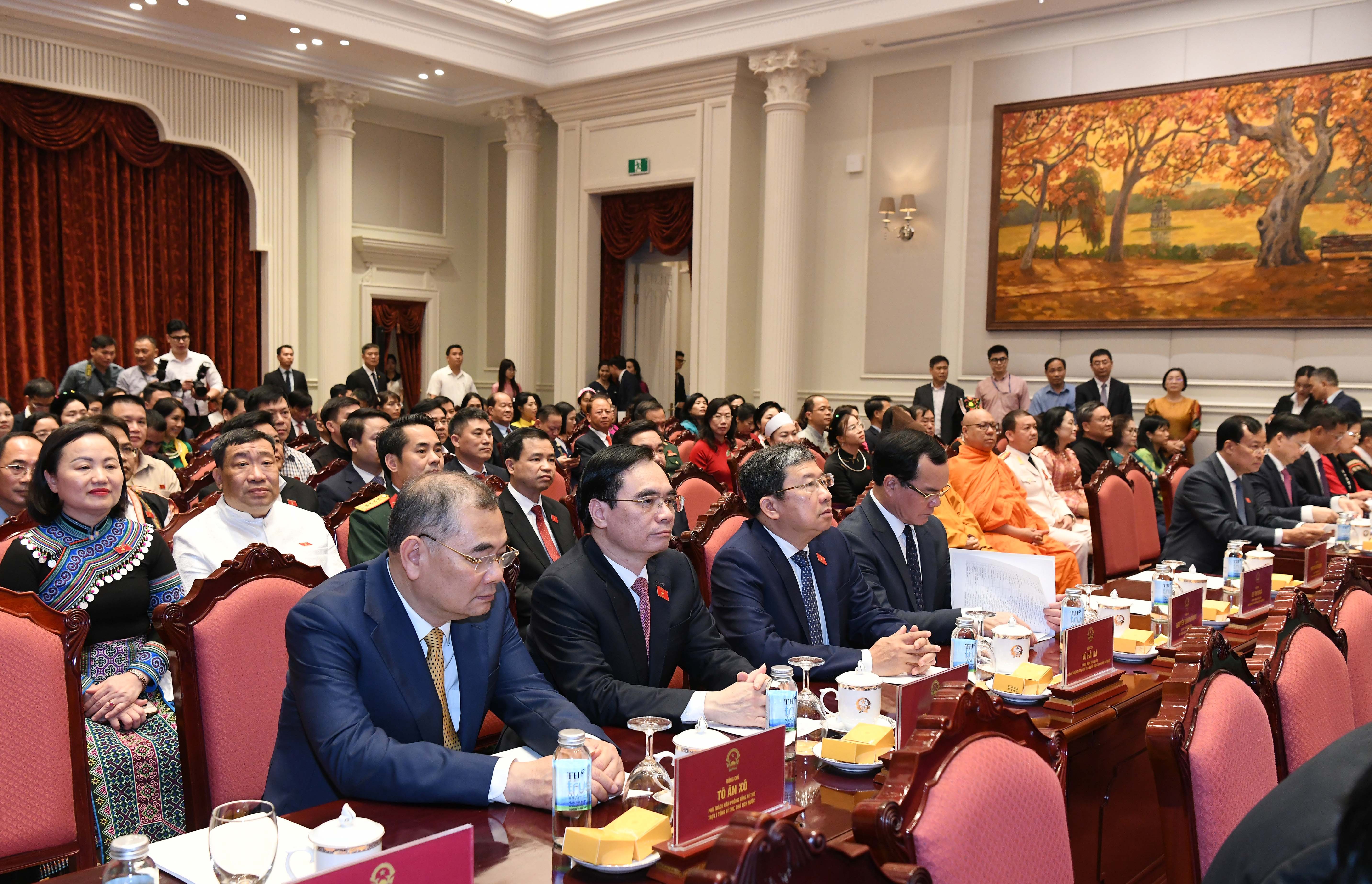 Tham dự cuộc gặp mặt có các Ủy viên Bộ Chính trị: Thủ tướng Chính phủ Lê Minh Hưng; Chủ tịch Quốc hội Trần Thanh Mẫn; Thường trực Ban Bí thư Trần Cẩm Tú; Bí thư Trung ương Đảng, Chủ tịch Ủy ban Trung ương MTTQ Việt Nam Bùi Thị Minh Hoài; Phó Chủ tịch Thường trực Quốc hội Đỗ Văn Chiến...