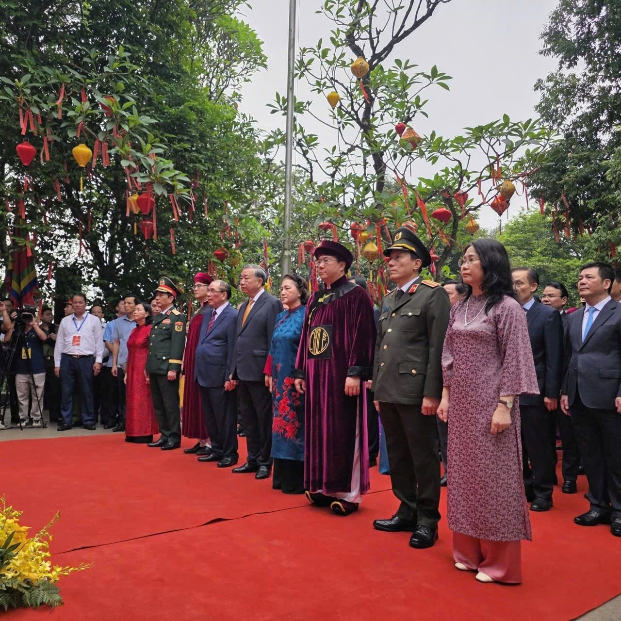 Trong không khí trang nghiêm, Tổng Bí thư, Chủ tịch nước Tô Lâm cùng đoàn đại biểu lãnh đạo Ðảng, Nhà nước, các cơ quan Trung ương, địa phương đã tề tựu đông đủ trước sân hành lễ tại khu vực Trung tâm Lễ hội Đền Hùng.