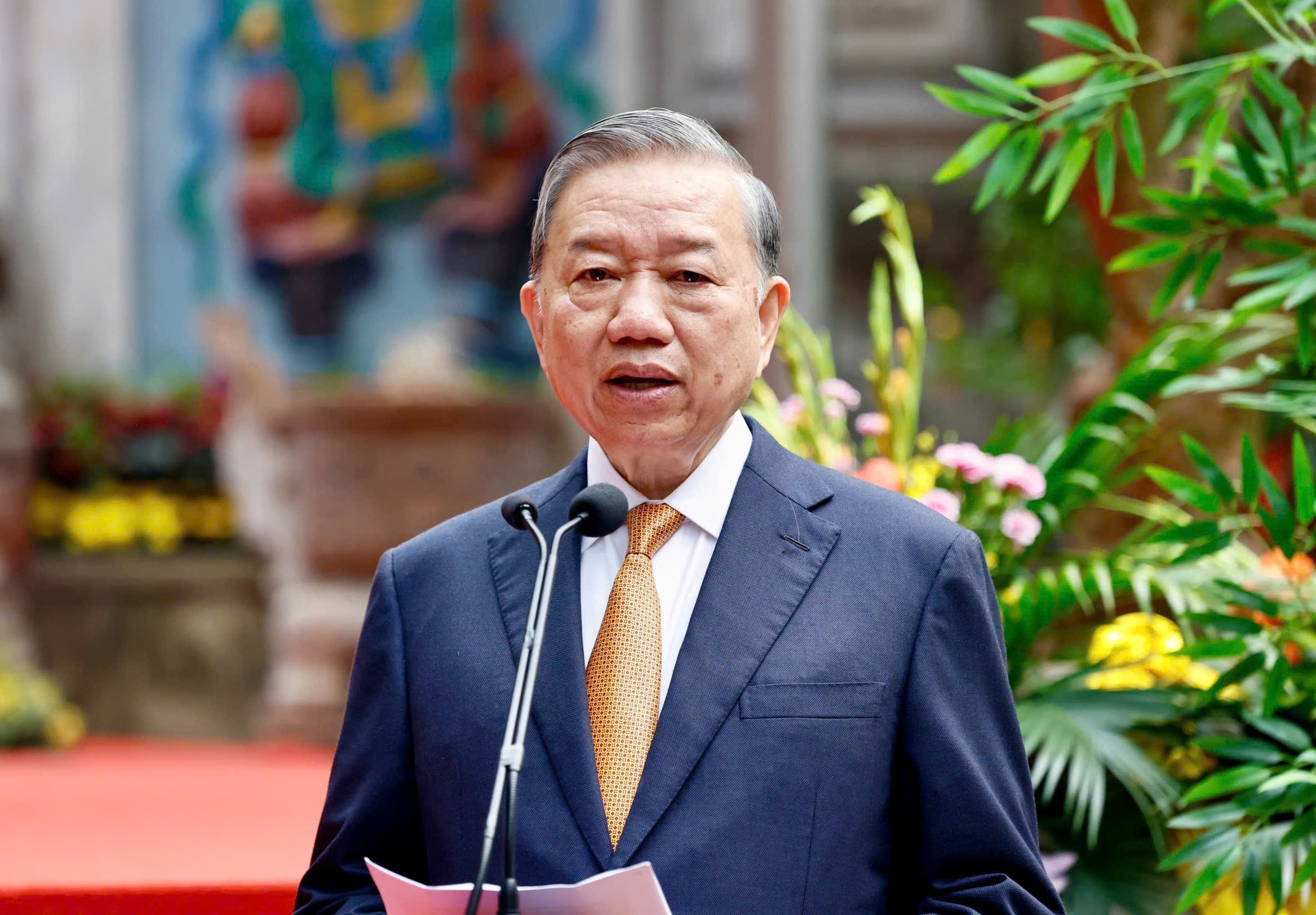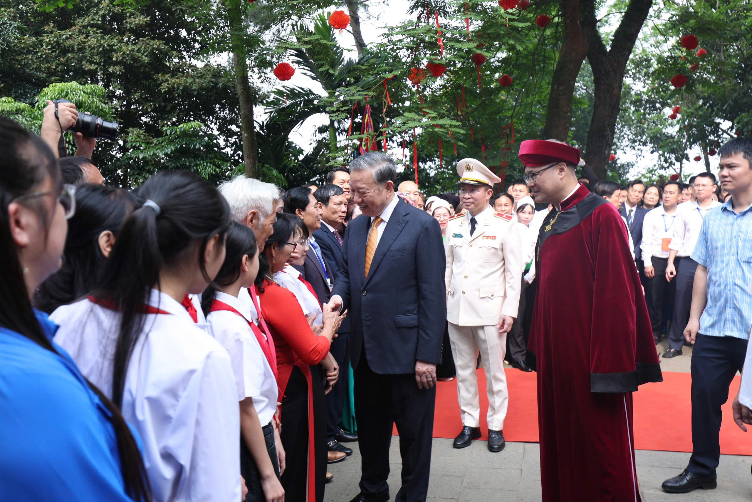 Tổng Bí thư, Chủ tịch nước Tô Lâm chia sẻ với nhân dân tại Khu di tích quốc gia đặc biệt Đền Hùng. Ảnh: VIẾT CHUNG