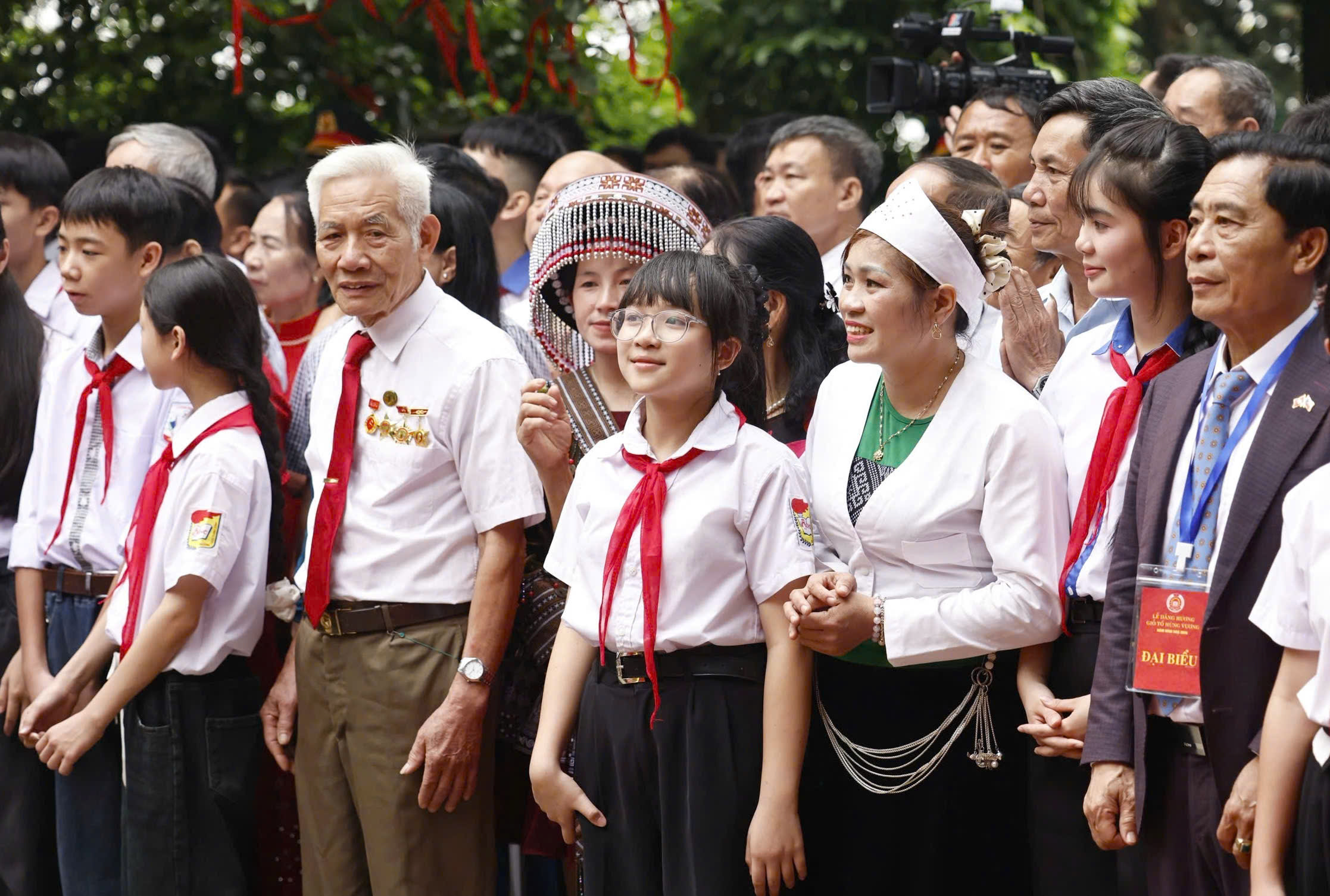 Người dân, các bậc cao niên và các cháu học sinh trong buổi lễ dâng hương tưởng niệm các Vua Hùng