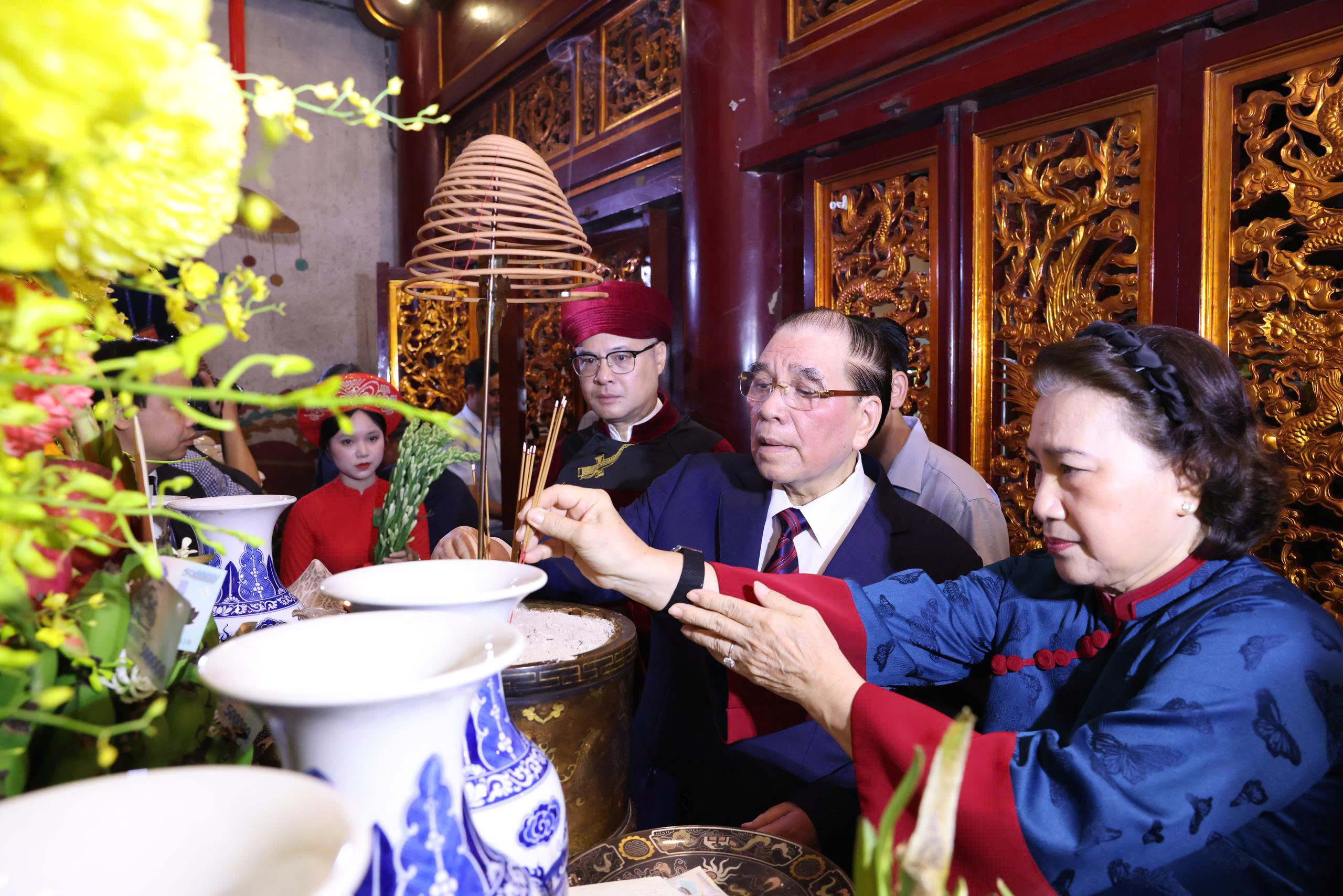 Các đồng chí nguyên lãnh đạo Đảng, Nhà nước dâng hương tại Thượng Cung (đền Thượng, trong Khu di tích quốc gia đặc biệt Đền Hùng)