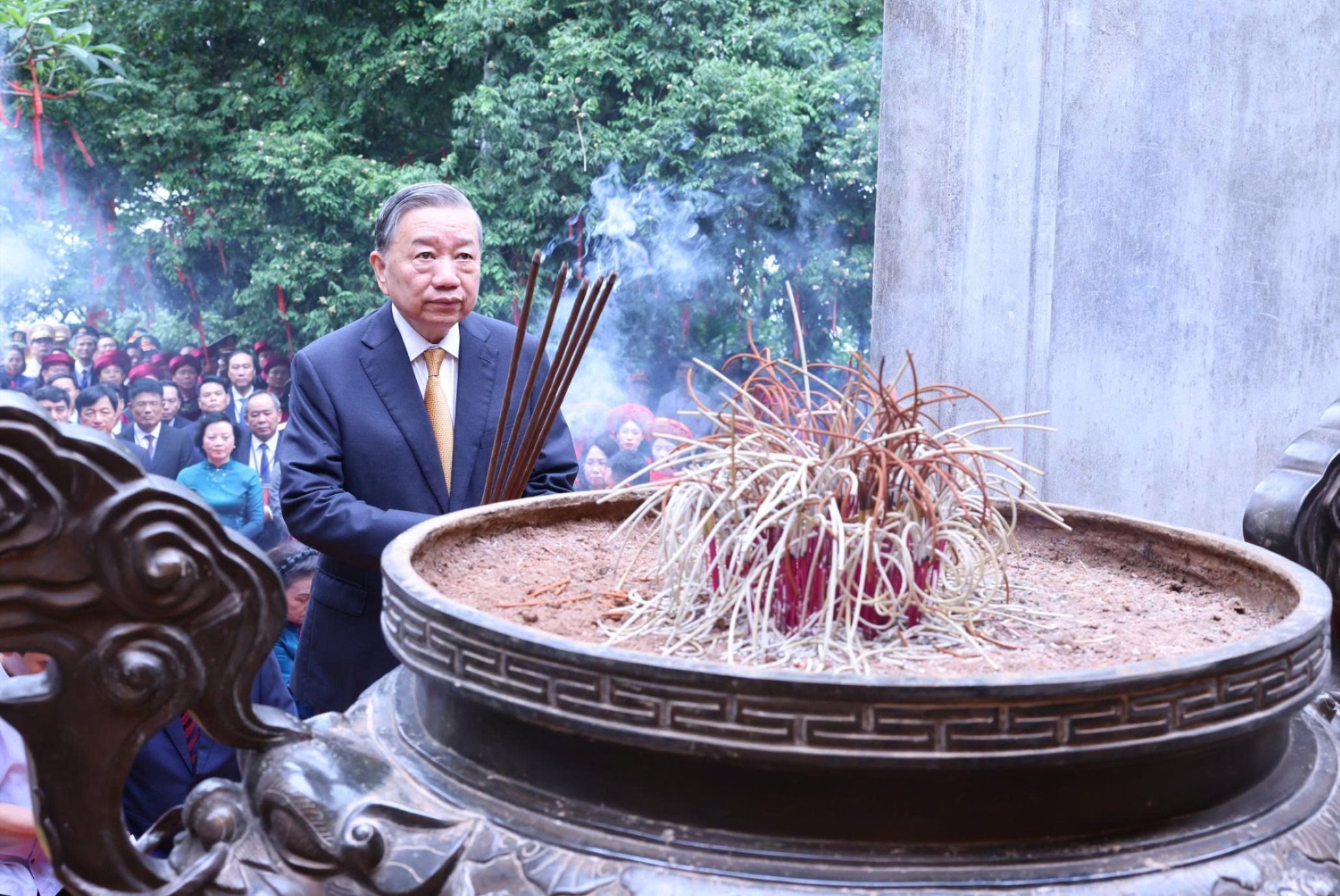 Tổng Bí thư, Chủ tịch nước Tô Lâm dâng hương tưởng nhớ các Vua Hùng. Ảnh: Sở VH-TT-DL tỉnh Phú Thọ cung cấp