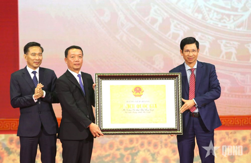 Đại diện Bộ Văn hóa, Thể thao và Du lịch trao bằng xếp hạng Di tích lịch sử cấp quốc gia đối với Khu mộ Tổng Bí thư Hà Huy Tập.