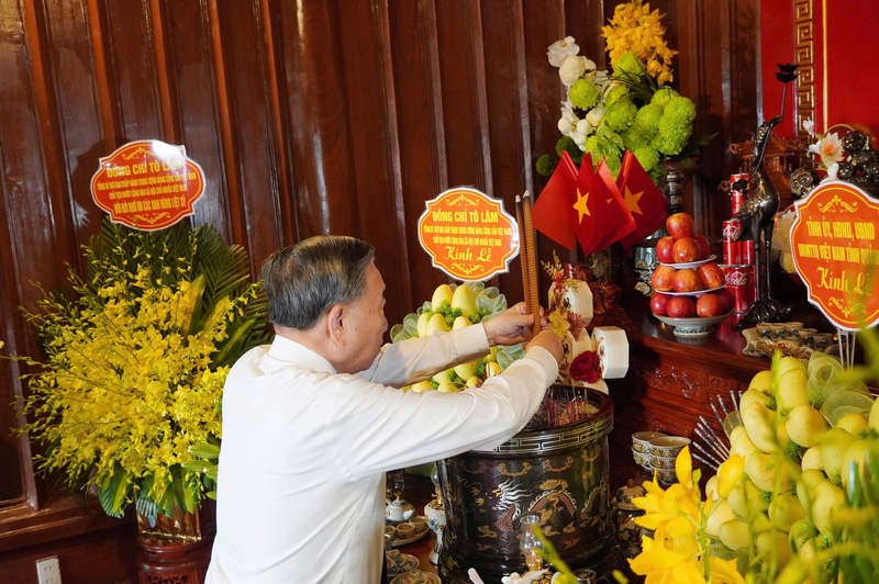 Sáng cùng ngày, trong chuyến công tác tại Quảng Trị, Tổng Bí thư, Chủ tịch nước Tô Lâm cùng Đoàn công tác của Trung ương đã tới dâng hoa, dâng hương tại khu mộ Đại tướng Võ Nguyên Giáp; Khu di tích lịch sử Quốc gia đặc biệt Bến phà Gianh; Nghĩa trang Liệt sỹ Quốc gia Trường Sơn.