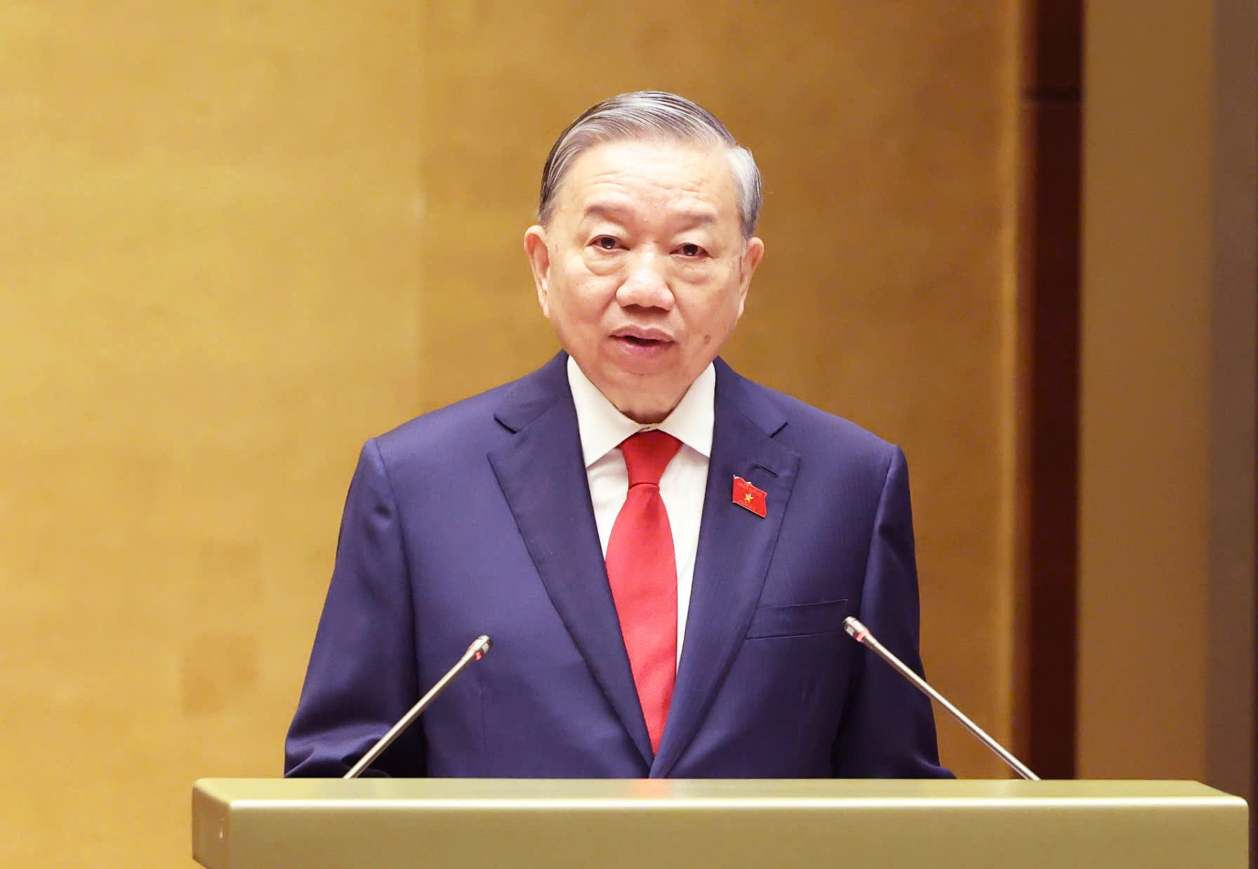 Tổng Bí thư, Chủ tịch nước Tô Lâm phát biểu tại Lễ nhậm chức. Ảnh: QH