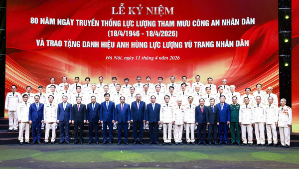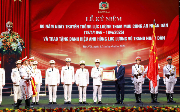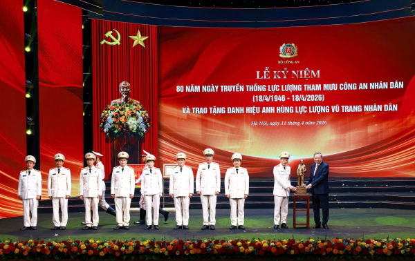 Như tin Báo CAND đã đưa, sáng 11/4, Đảng ủy Công an Trung ương, Bộ Công an tổ chức Lễ kỷ niệm 80 năm Ngày truyền thống lực lượng Tham mưu CAND (18/4/1946 - 18/4/2026) và trao tặng danh hiệu Anh hùng LLVTND cho Văn phòng Bộ Công an. Tổng Bí thư, Chủ tịch nước Tô Lâm dự và phát biểu chỉ đạo tại lễ kỷ niệm. Dự lễ kỷ niệm có các đồng chí lãnh đạo Đảng, Nhà nước, nguyên lãnh đạo Đảng, Nhà nước; lãnh đạo, nguyên lãnh đạo Bộ Công an qua các thời kỳ. Đại tướng Lương Tam Quang, Ủy viên Bộ Chính trị, Bí thư Đảng ủy Công an Trung ương, Bộ trưởng Bộ Công an chủ trì buổi lễ.