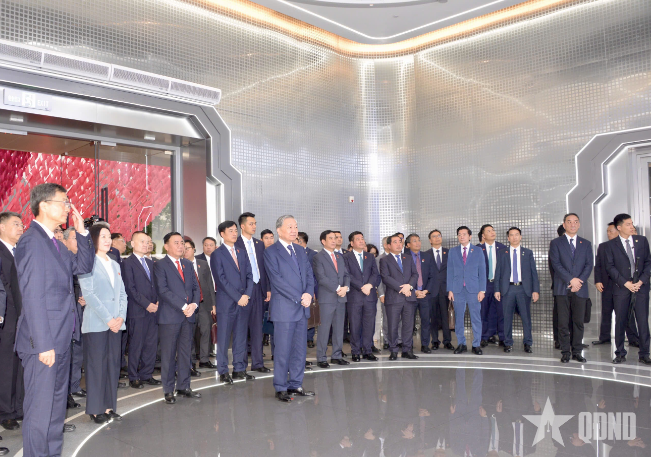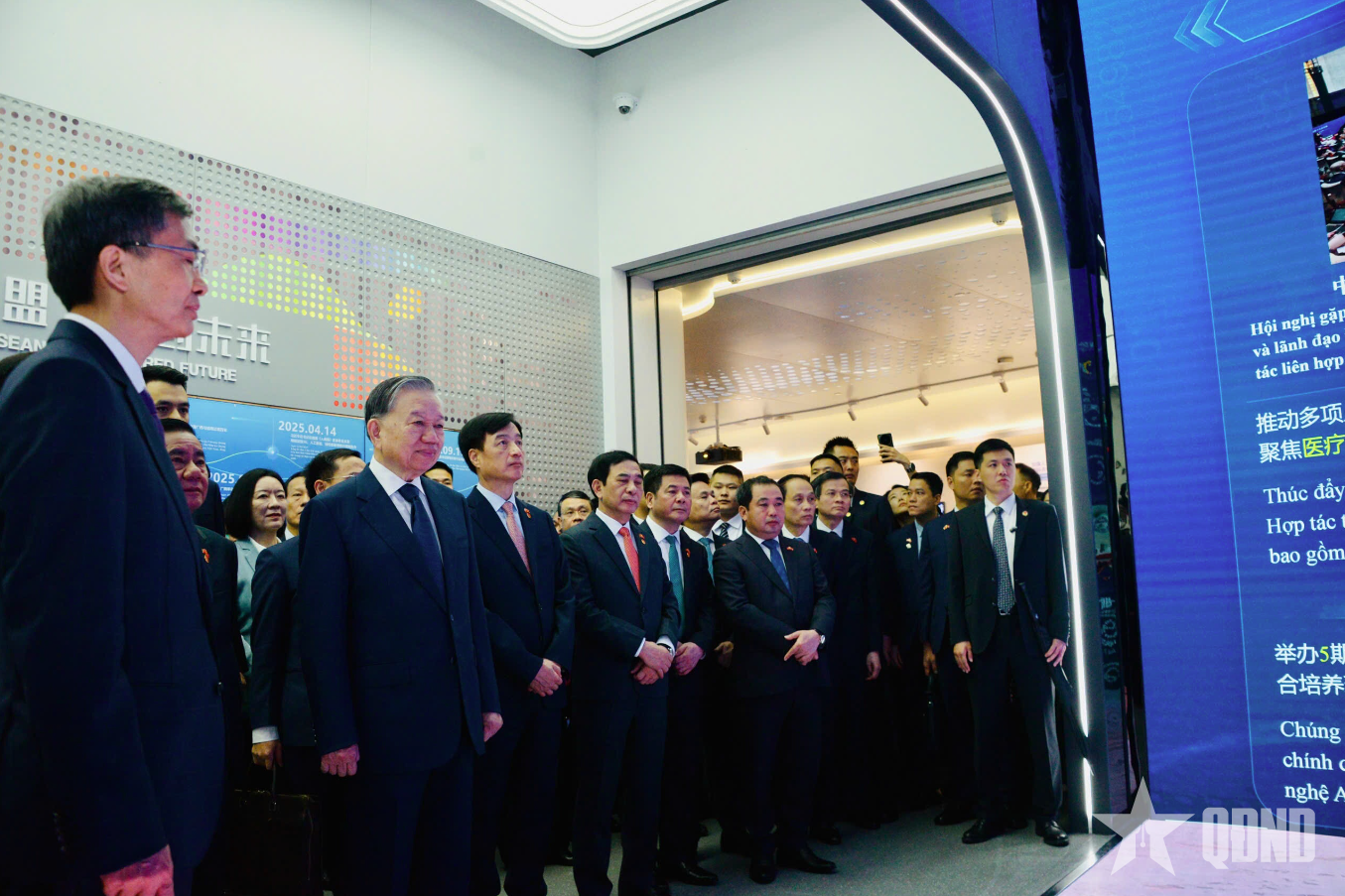 Tổng Bí thư, Chủ tịch nước Tô Lâm và các đại biểu tại Trung tâm hợp tác ứng dụng AI Trung Quốc - ASEAN.
