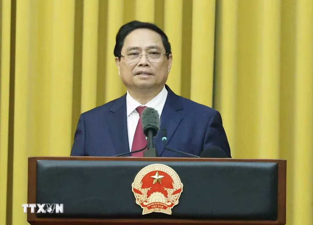 Thủ tướng Lê Minh Hưng phát biểu tại hội nghị. Ảnh: TTXVN