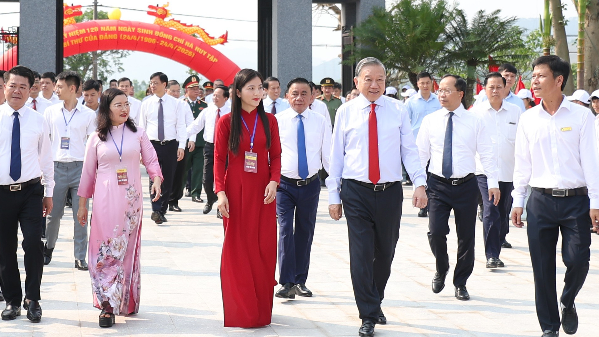 Sau lễ dâng hương, Tổng Bí thư, Chủ tịch nước Tô Lâm và đoàn công tác dự Lễ kỷ niệm 120 năm ngày sinh Tổng Bí thư Hà Huy Tập do Tỉnh ủy - HĐND - UBND - Ủy ban MTTQ tỉnh Hà Tĩnh tổ chức.