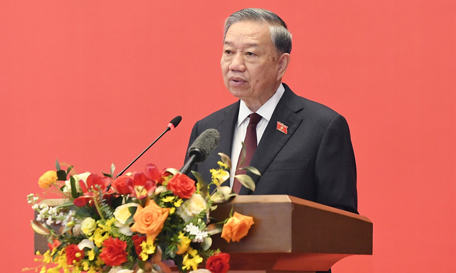 "Xây dựng đội ngũ cán bộ, đảng viên trong toàn Đảng bộ Quốc hội có bản lĩnh chính trị vững vàng, tuyệt đối trung thành với Đảng, tận tụy phục vụ nhân dân, có phẩm chất đạo đức, năng lực chuyên môn đáp ứng yêu cầu công tác. Kiên quyết phòng, chống tham nhũng, lãng phí, tiêu cực; tuyệt đối không để 'cài cắm' lợi ích nhóm trong các hoạt động lập pháp, giám sát và quyết định những vấn đề lớn của đất nước", Tổng Bí thư, Chủ tịch nước yêu cầu.