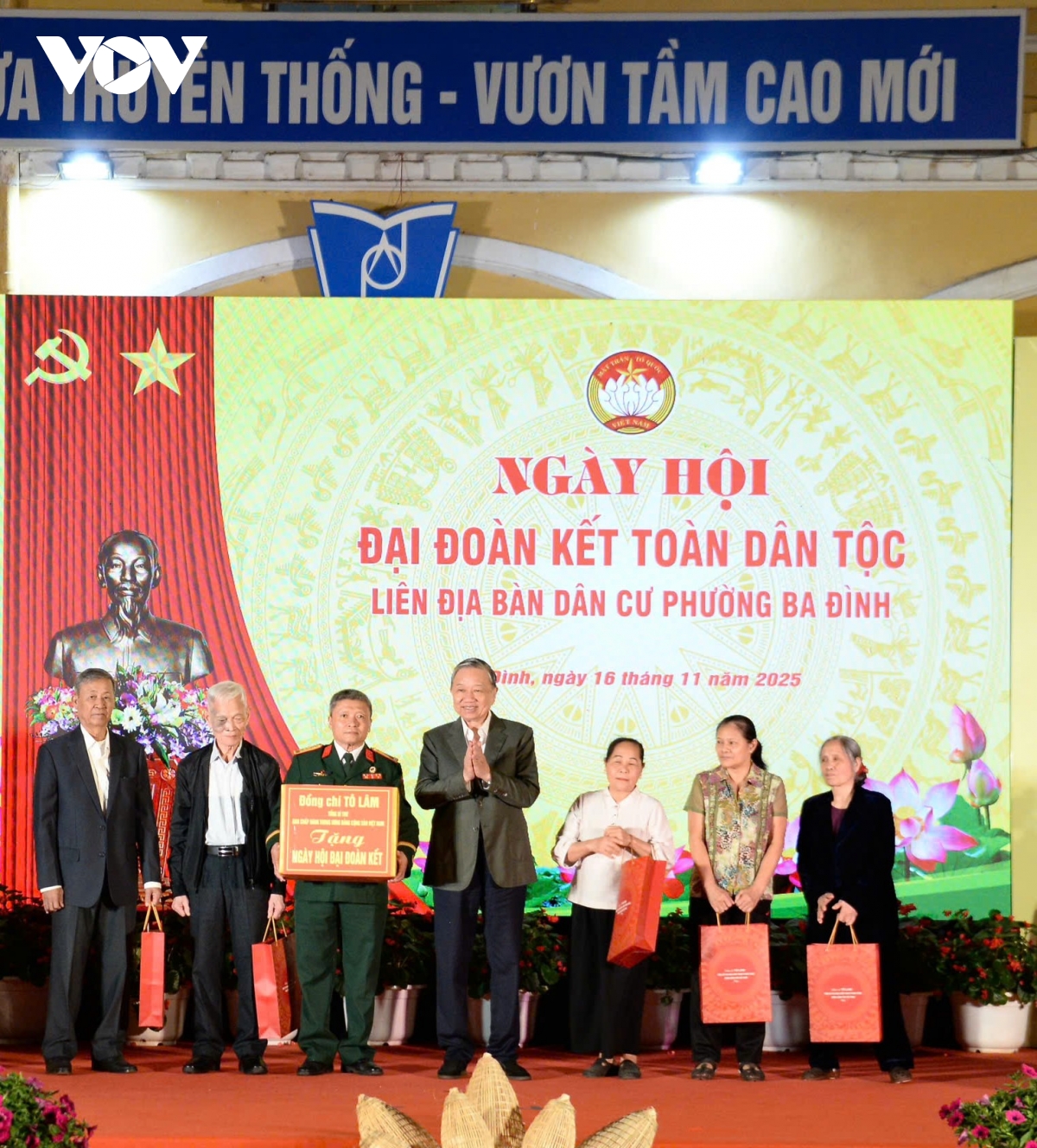 Tại Ngày hội, Tổng Bí thư Tô Lâm đã trao bức tượng Bác Hồ về thăm quê tặng Đảng bộ, chính quyền và Nhân dân phường Ba Đình; trao quà tặng tập thể đơn vị tổ chức Ngày hội và 10 hộ gia đình chính sách trên địa bàn phường Ba Đình.