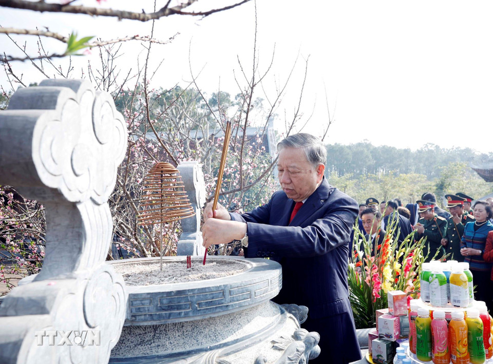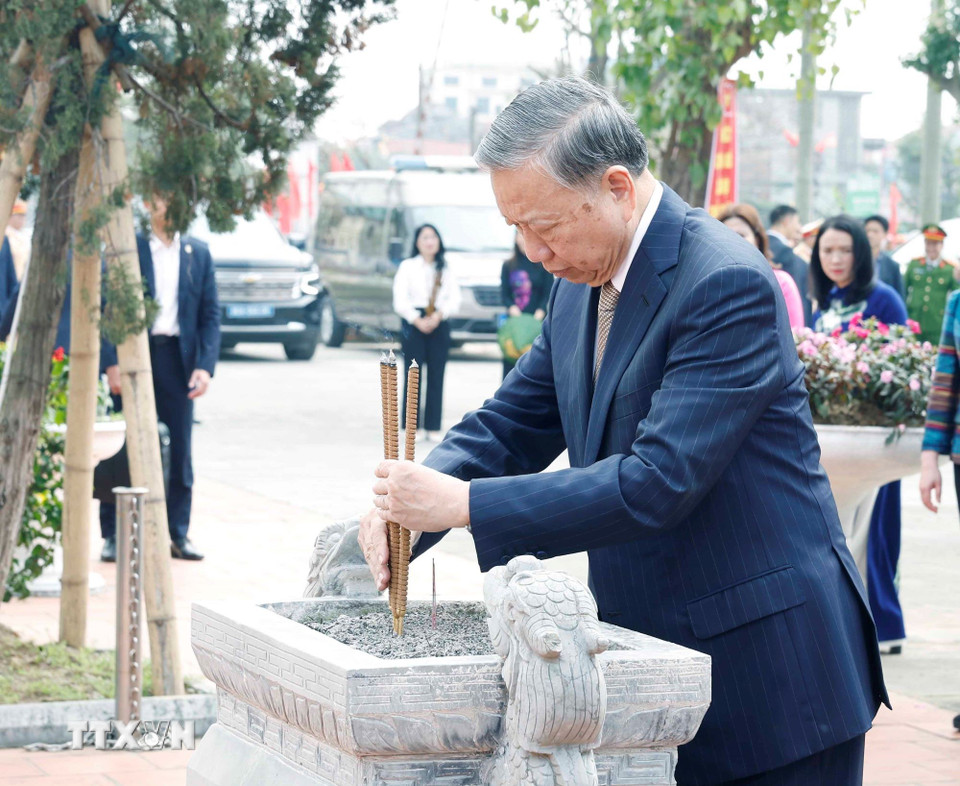 Tổng Bí thư Tô Lâm dâng hương tưởng nhớ các Anh hùng liệt sỹ Xô viết Nghệ Tĩnh. (Ảnh: Thống Nhất/TTXVN)