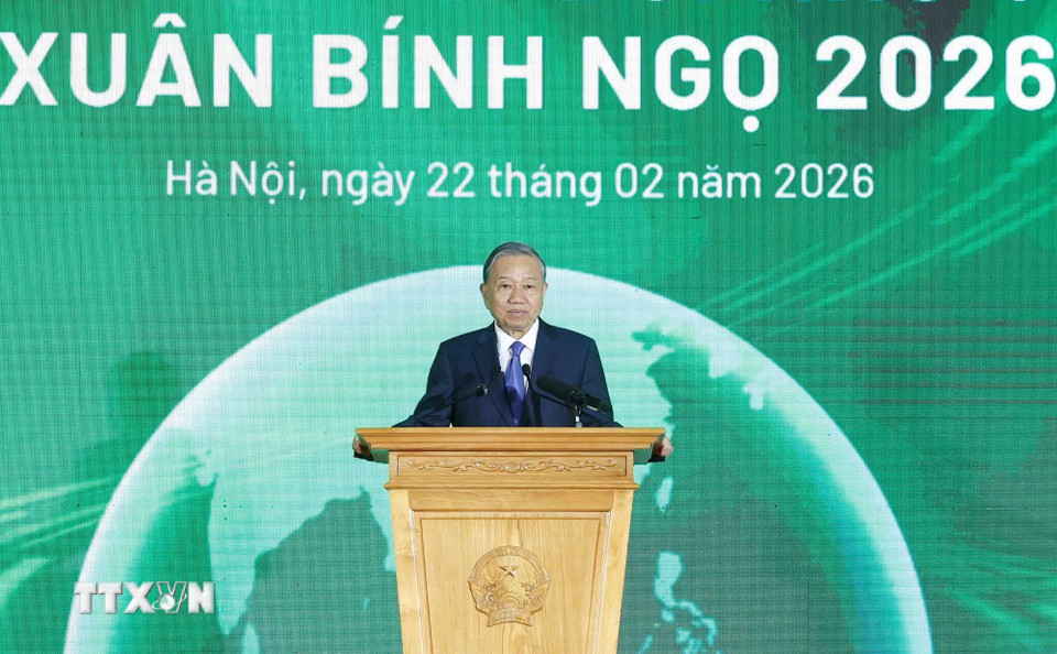 Tổng Bí thư Tô Lâm phát biểu chỉ đạo và phát động “Tết trồng cây đời đời nhớ ơn Bác Hồ” Xuân Bính Ngọ 2026. (Ảnh: Thống Nhất/TTXVN)