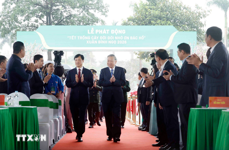 Tổng Bí thư Tô Lâm đến dự Lễ phát động “Tết trồng cây đời đời nhớ ơn Bác Hồ” Xuân Bính Ngọ 2026. (Ảnh: Thống Nhất/TTXVN)