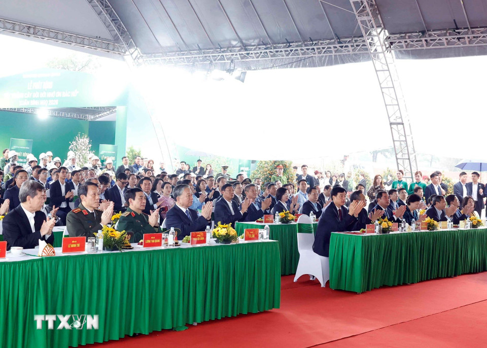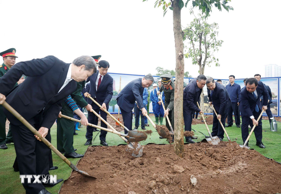 Tổng Bí thư Tô Lâm và các đại biểu tham gia trồng cây tại Lễ phát động “Tết trồng cây đời đời nhớ ơn Bác Hồ” Xuân Bính Ngọ 2026. (Ảnh: Thống Nhất/TTXVN)
