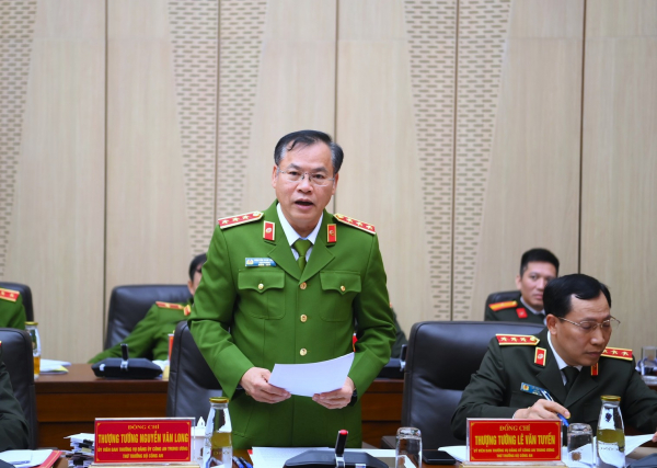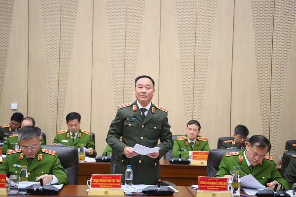 Các đồng chí Thứ trưởng Bộ Công an trình bày báo cáo tại hội nghị.