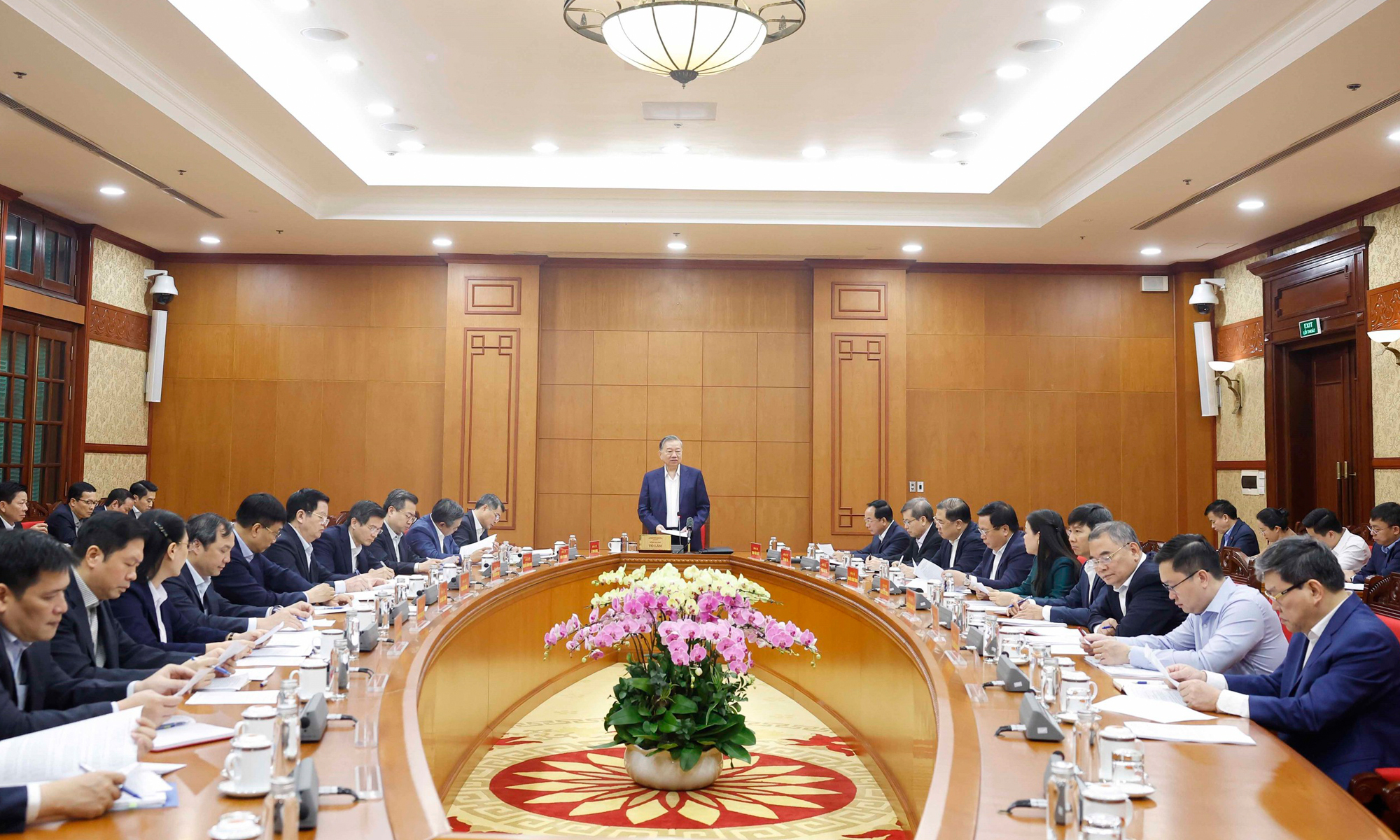 Phát biểu kết luận buổi làm việc, Tổng Bí thư nhấn mạnh đất nước bước vào giai đoạn phát triển mới với yêu cầu rất cao: tiếp tục xây dựng, chỉnh đốn Đảng và hệ thống chính trị; tổ chức lại bộ máy theo hướng tinh gọn, hiệu lực, hiệu quả; vận hành chính quyền địa phương 2 cấp; đẩy mạnh phân cấp, phân quyền; thúc đẩy tăng trưởng nhanh, bền vững và hiện thực hóa các mục tiêu chiến lược dài hạn đến giữa thế kỷ XXI.